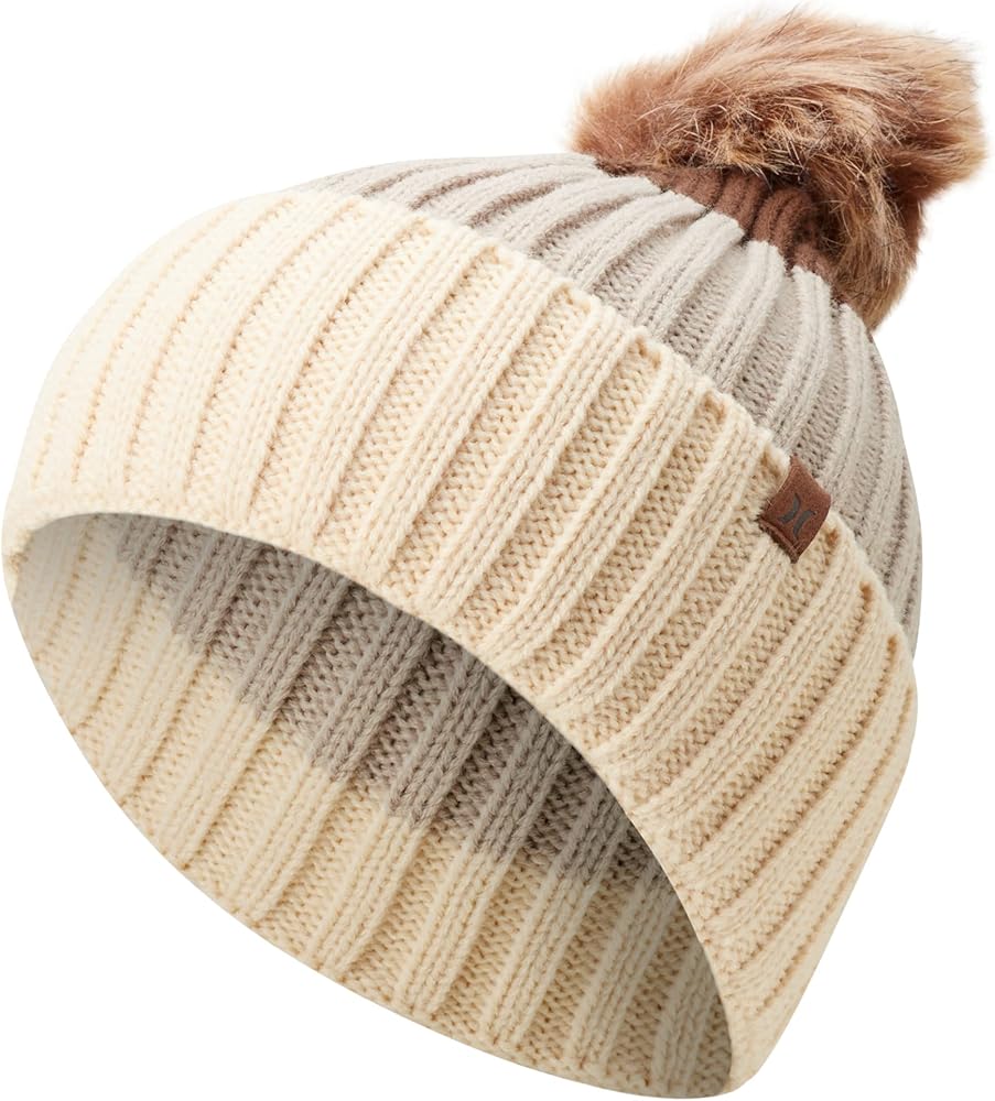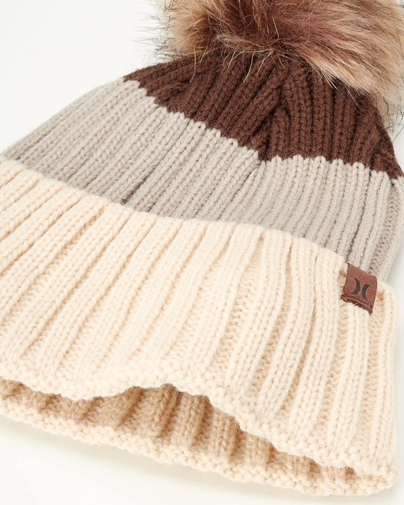 KNIT POM BEANIE: Women's pom pom beanie looks great with any outfit; Whether you're looking for a simple knit beanie to add to your daily outfit or want a new addition to add to your existing beanie hats collection, Hurley's June Pom beanie is the best choice; Perfect winter hat for casual wear, skiing, snowboarding, going to work, back to school, and wearing around campus