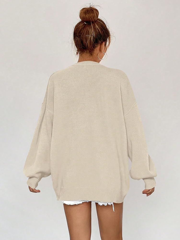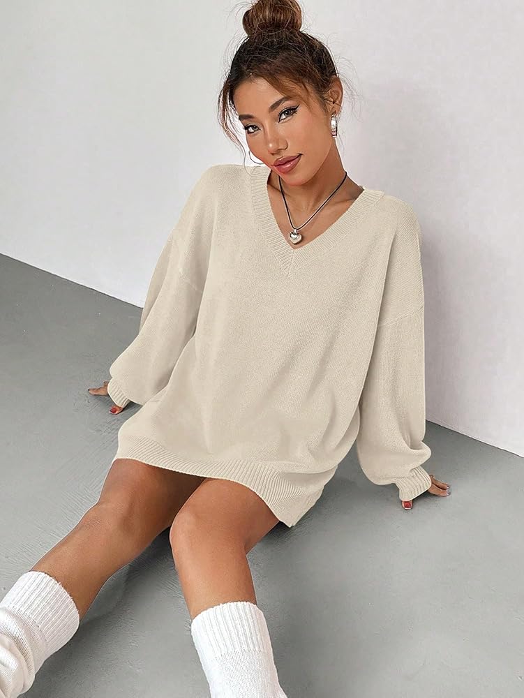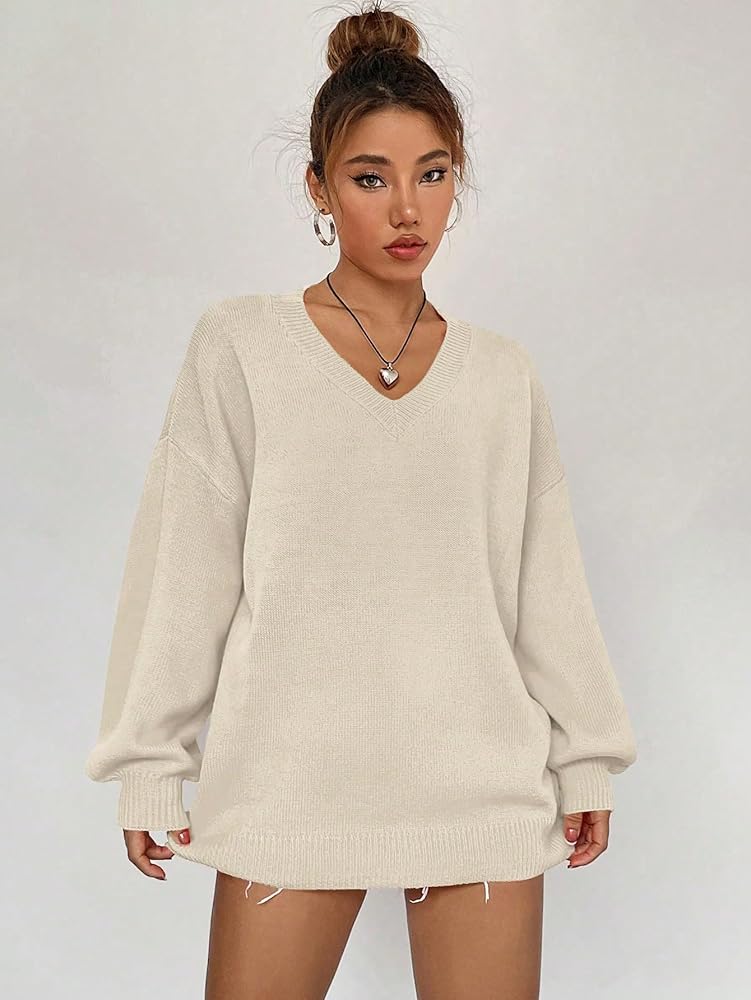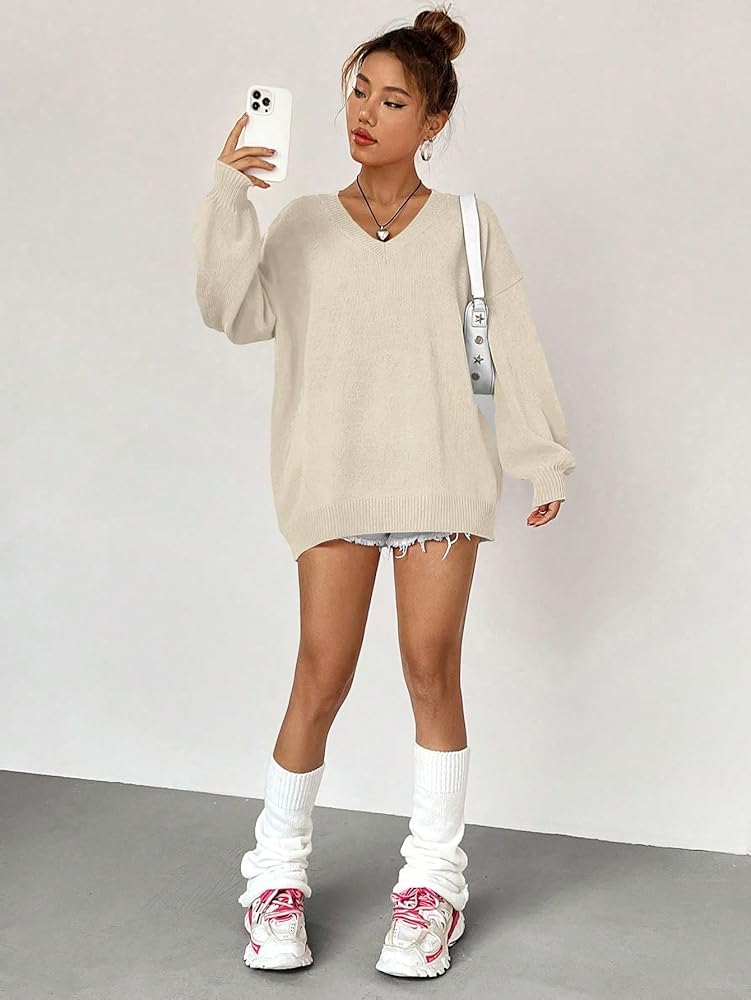 - Feature: v neck, long sleeve, drop shoulder, oversized, solid color, casual style, sweater for women