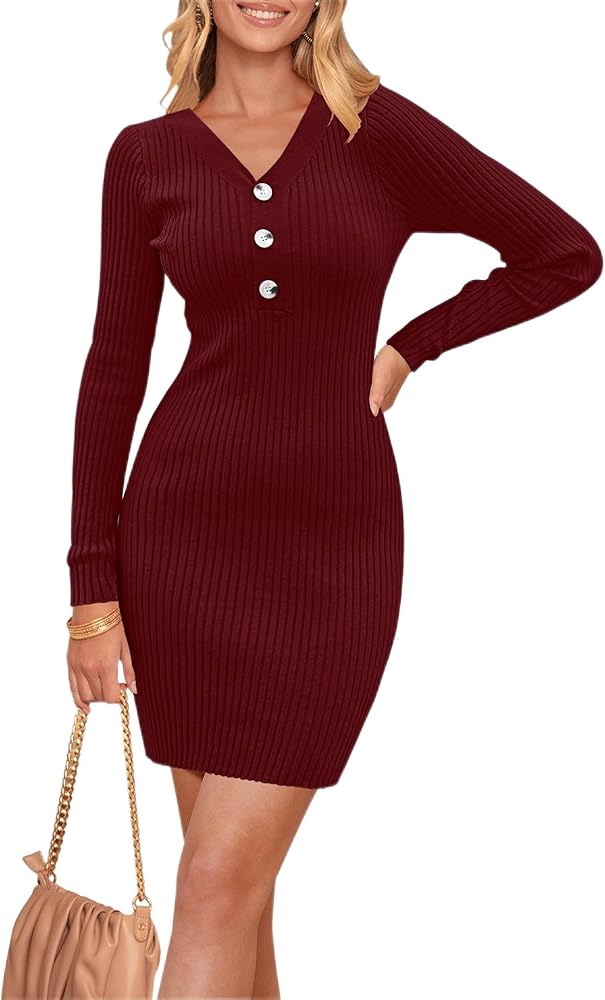 Unique design: The elegant pullover sweater mini dress for women, features a deep v neck, long sleeve, ribbed knit, sexy bodycon style, delicate buttons, and solid color, making you look gorgeous and stylish.