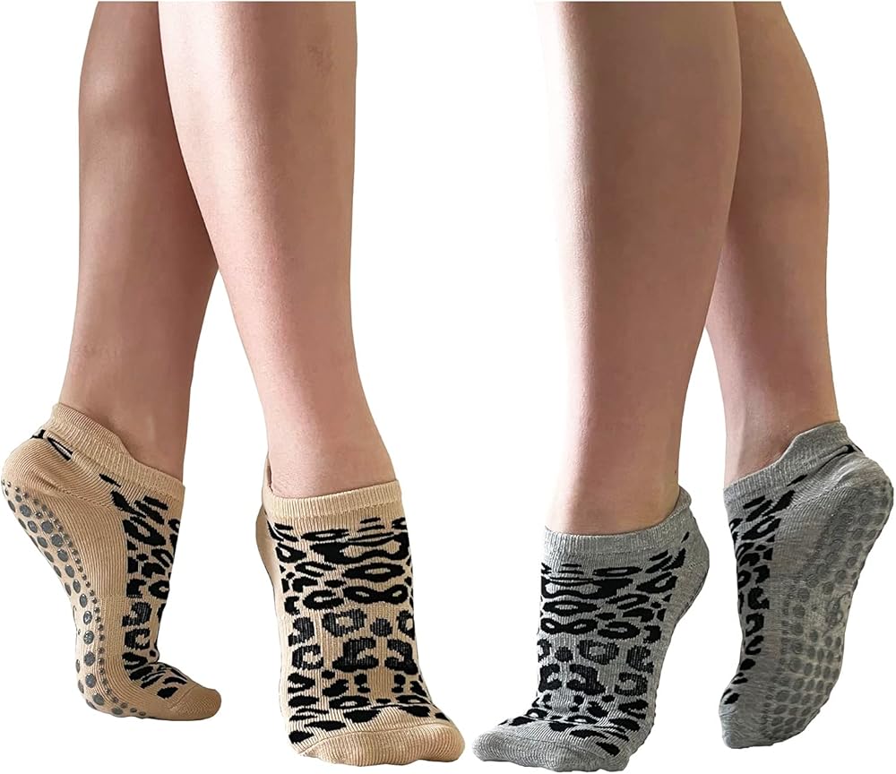 Non Slip Pilates Barre Socks with Grips, Anti Skid Leopard Print Ankle Grip Yoga Socks