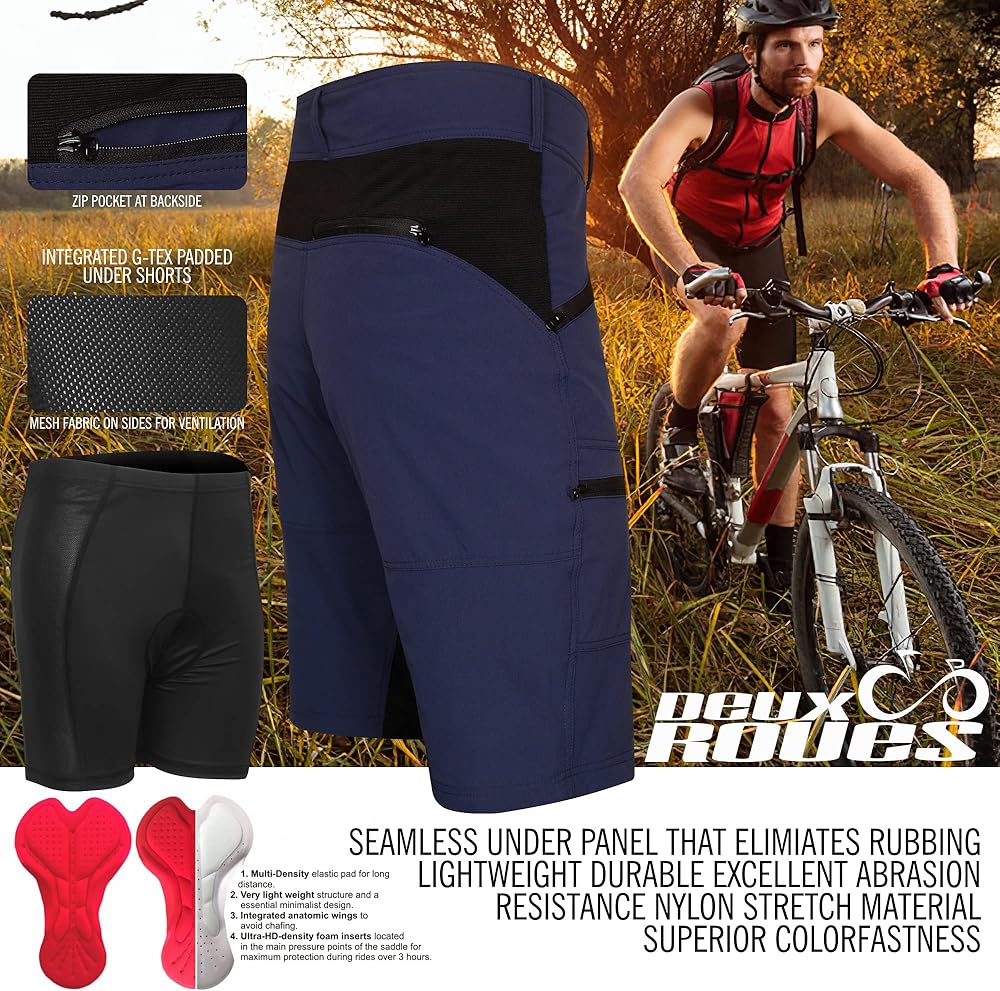 SEPARATE SHORTS AND UNDERSHORTS - Removable Liner: 2 shorts in 1. MTB shorts with a 3D coolmax gel padded underwear inside offers the most comfortable ride you've ever had!