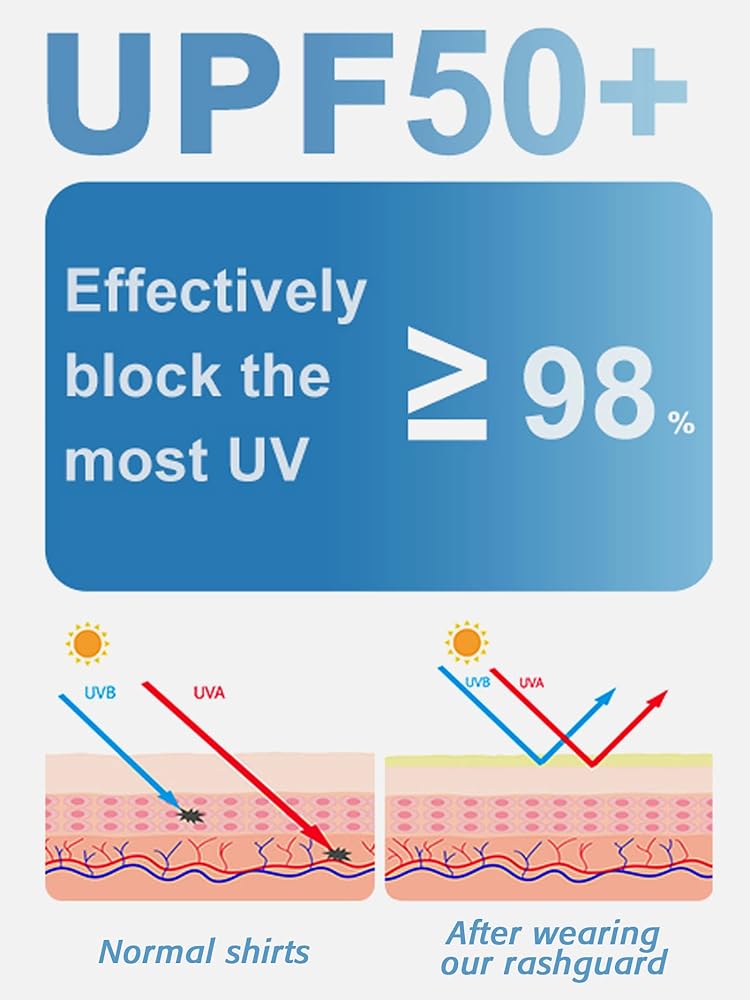 Sun Protection: The UPF 50+ blocks UV radiation and protects your skin whether you're in or out of the water. The long sleeve design gives you more skin protection from sunburn or scratches etc