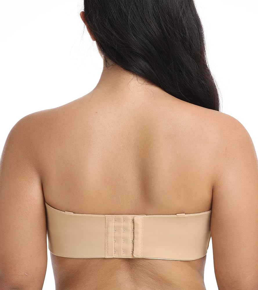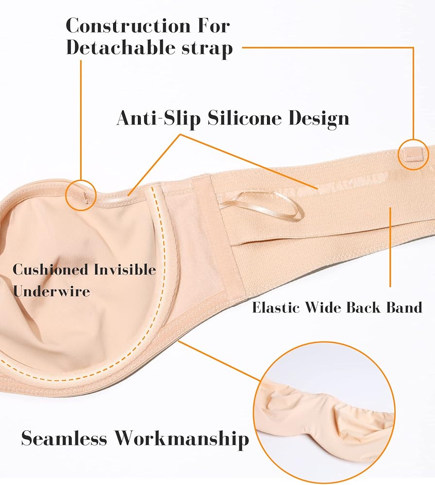 ⭐Smooth Side and Back: Featured with wide elastic side wing and invisible side boning, this underwire strapless bra is good at smoothing side and back fat. Give you a decent look.
