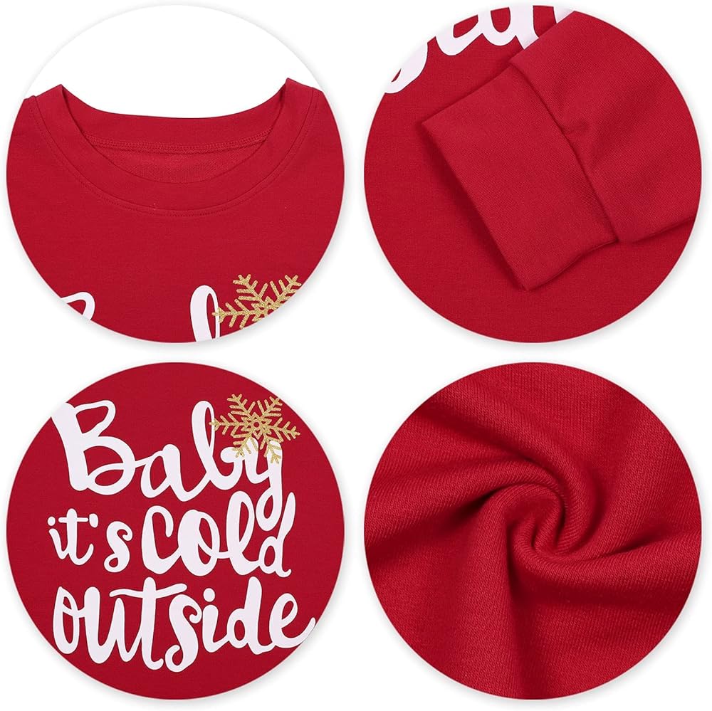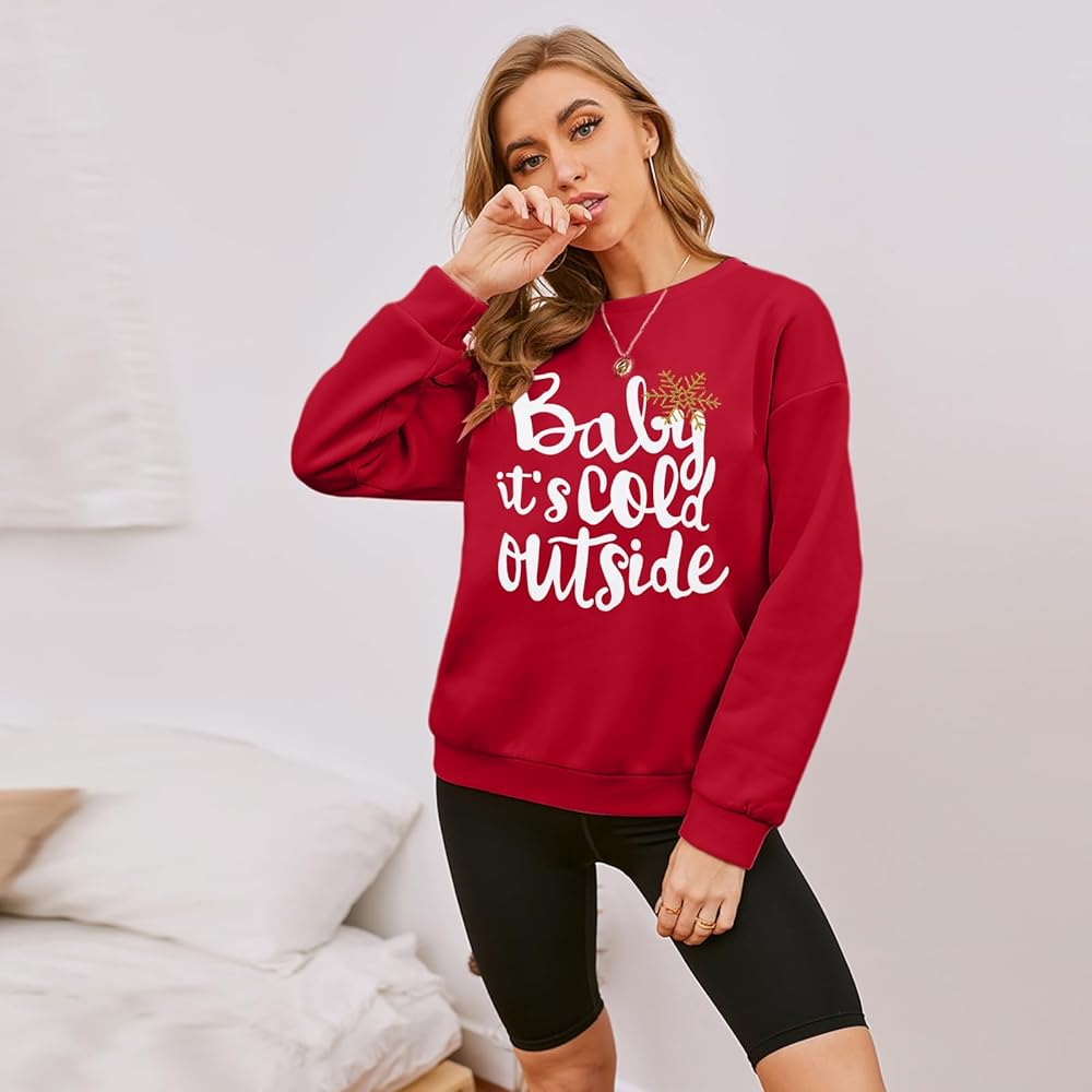 EXCELLENT DESIGN: The sweatshirt is printed with Baby Its Cold Outside letters, adopts professional printing, that ensure clear graphic and lasting durability, design stayed after washing, and its printed with cute snowflake graphic, that make you look particularly dazzling and unique in the crowd. The long sleeve sweatshirt design is more fashion, loose and breathable