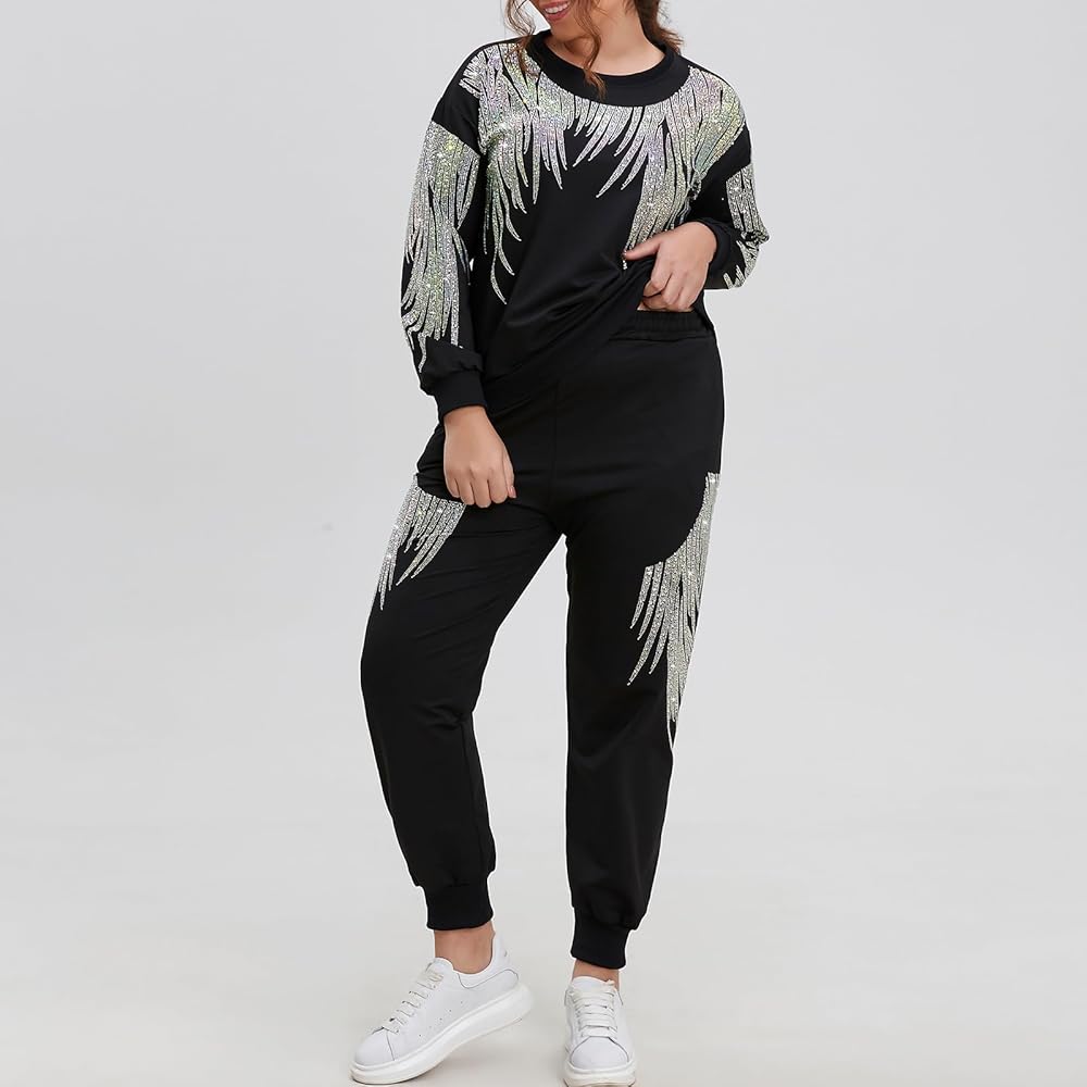 5. Trendy Fall/Winter women fashion: Stay on-trend with this womens sweatshirts no hood. This plus size clothes for women men design and rhinestone embellishments make it a stylish choice for the upcoming season.