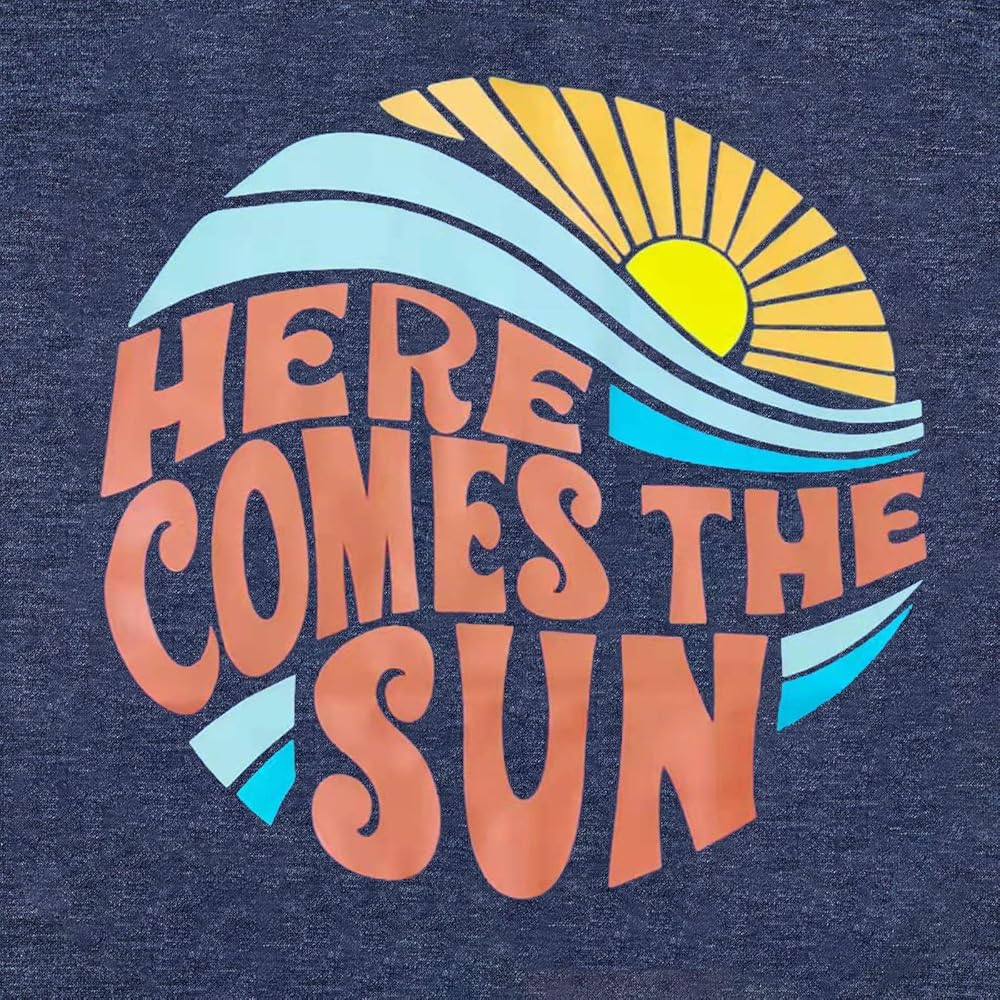 Features: Here come the sun shirt, sunshine graphic t shirt, funny letter print, summer beach party tops, vintage crew neck tees, casual short sleeve vacation tee shirt, wish bring the sunshine for you