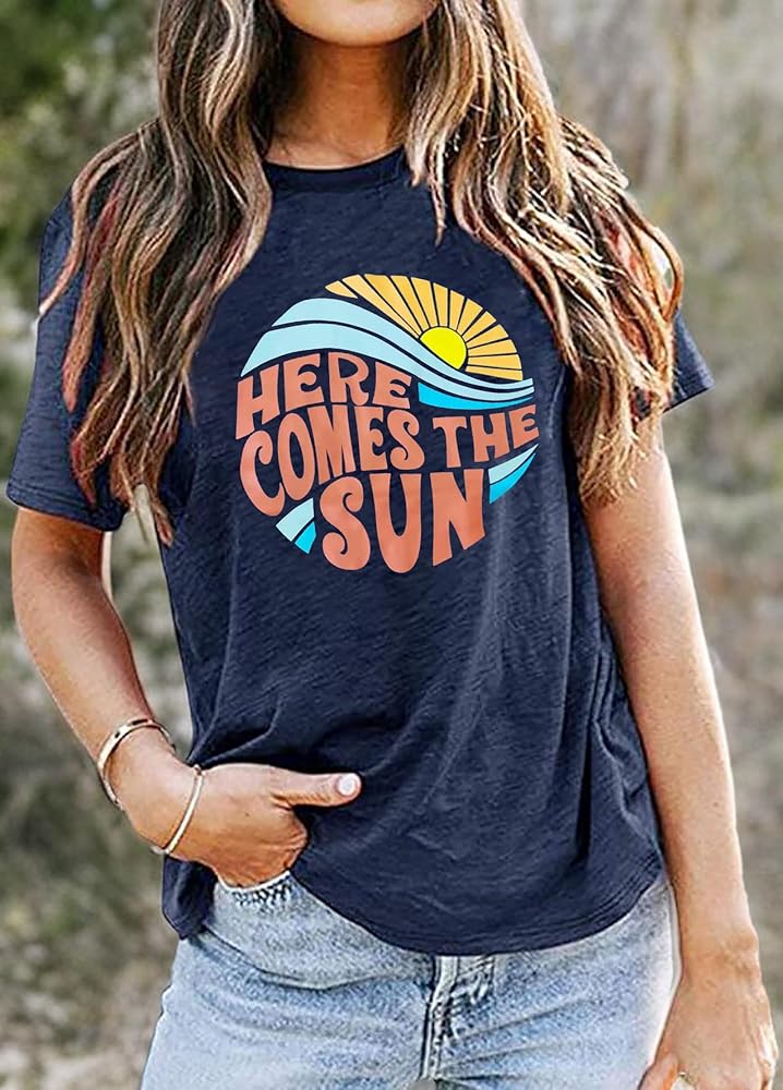 Package Included: 1* Women Here Come the Sun T Shirt Sunshine Beach Short Sleeve Shirts