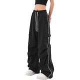 Parachute cargo pants for women are suitable for both men and women to wear. All please check the size chart before purchase. Womens black cargo pants can be hand or machine washed. Please do not bleach, do not wash in hot water, do not tumble dry.