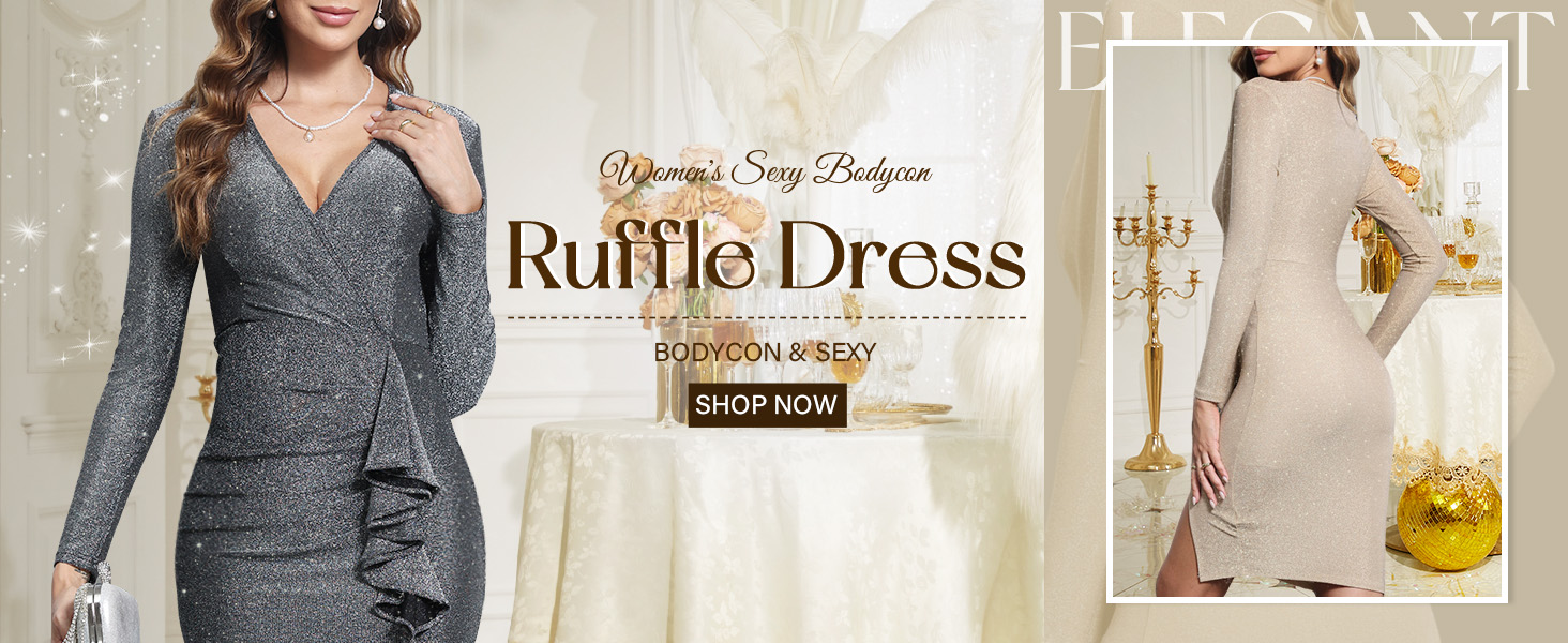 Occasion:Evening guess dress for women, very suit for cocktail, party, club, night out, formal occassion, evening, wedding, dating, homecoming. With this sparkly ruffle dress, you'll be sexy, elegant, charming.This metallic glitter dress can well meet your fashion needs in fall and winter, styling with high heels and some shiny accessories will look more beautiful, a must-have in your wardrobe!