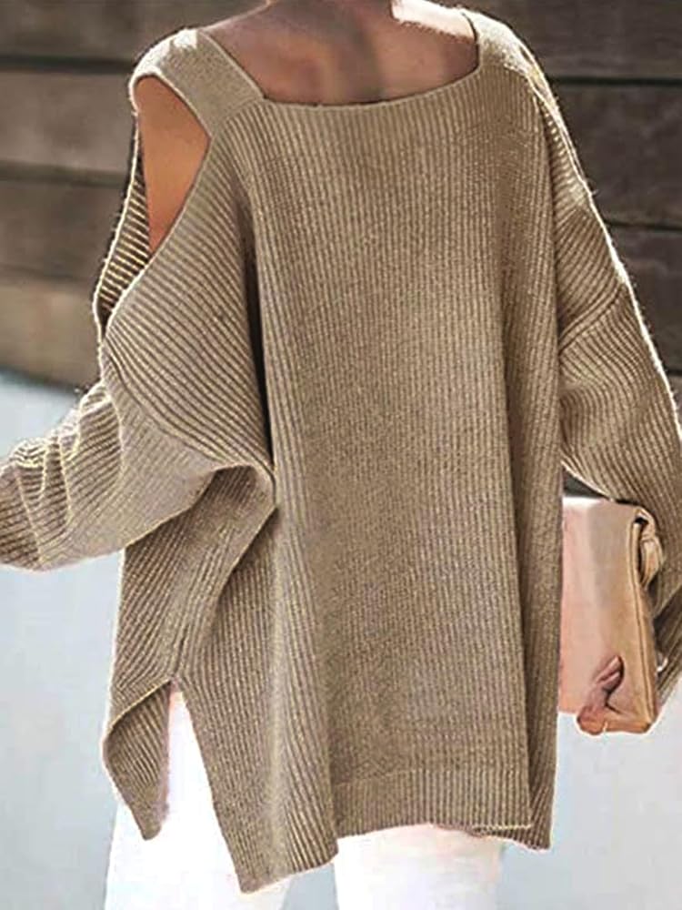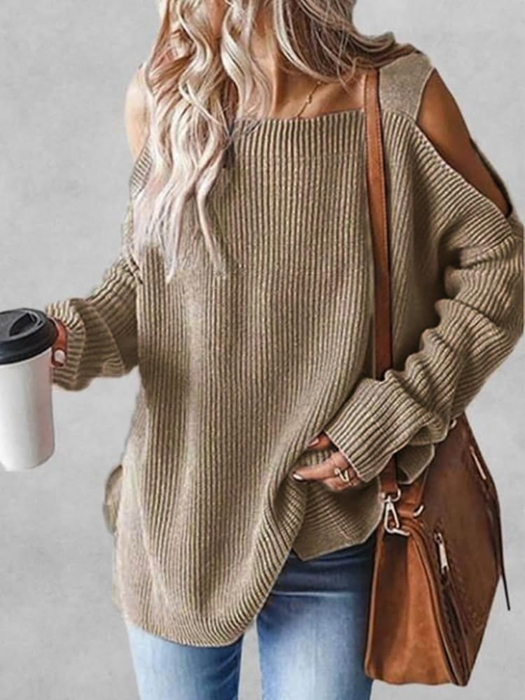 [Unique Design]:The cold shoulder and square neck designs offer the sweater a fashionable appearance. The long sleeves pullover with solid color can bring a touch of warmth to autumn.