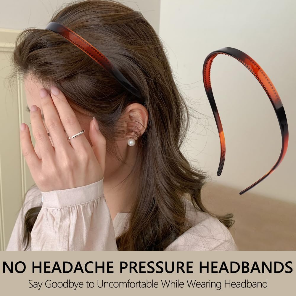 Comfortable, Durable and Non Slip - Made of high-quality resin plastic, our headbands are strong, lightweight, and won't break easily. They're also gentle on your scalp, making them perfect for long-term wear. All plastic headbands with two rows teeth to hold the head band in your hair and no slip. You can wear these all day.
