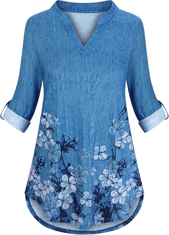 - 🎅Features:Womens Blouses and Tops for Work/Roll Sleeve or Full Sleeve/Henley V Neck/High Low Hem/Pleated Front/Comfy Plaid Shirts/ Casual Women Tops
