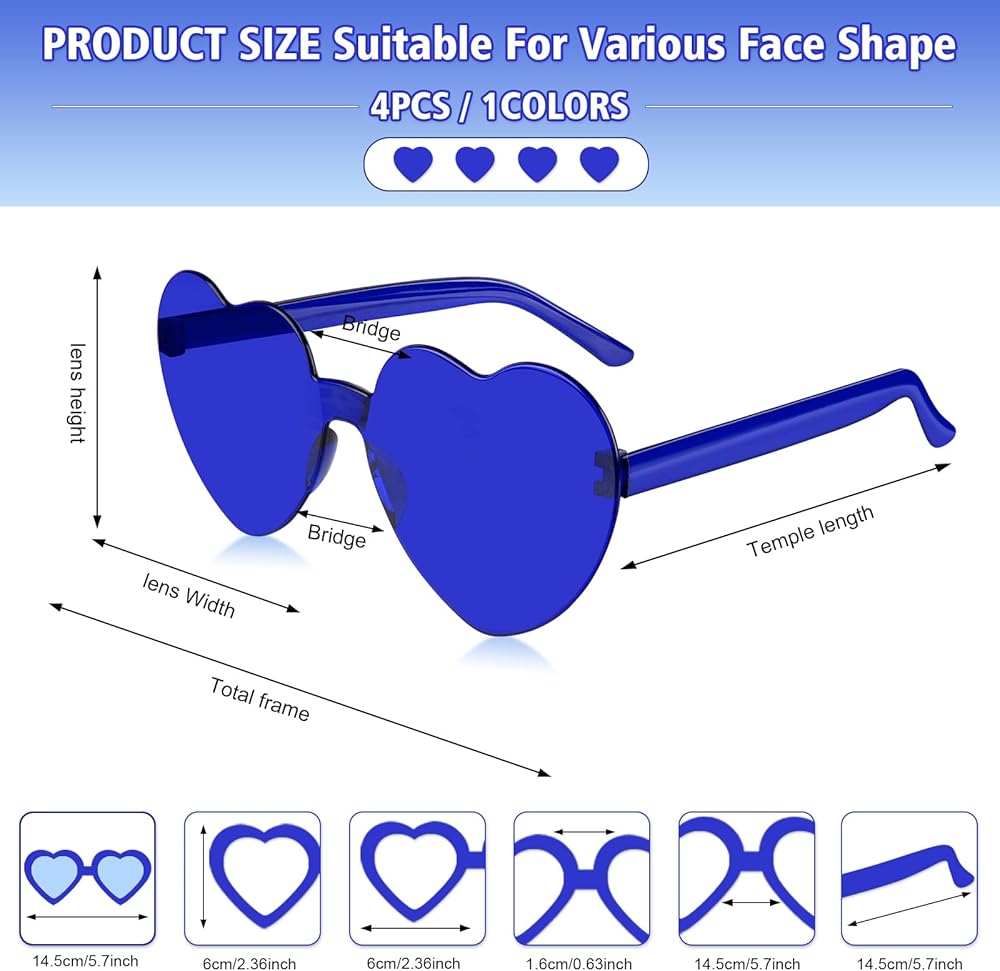 Wide range of uses: These candy-colored heart-shaped glasses are suitable for most occasions, such as parties, parties, photoshoots, cosplay, weddings, travel, fun activities, and can also be used as gifts for friends, family, couples