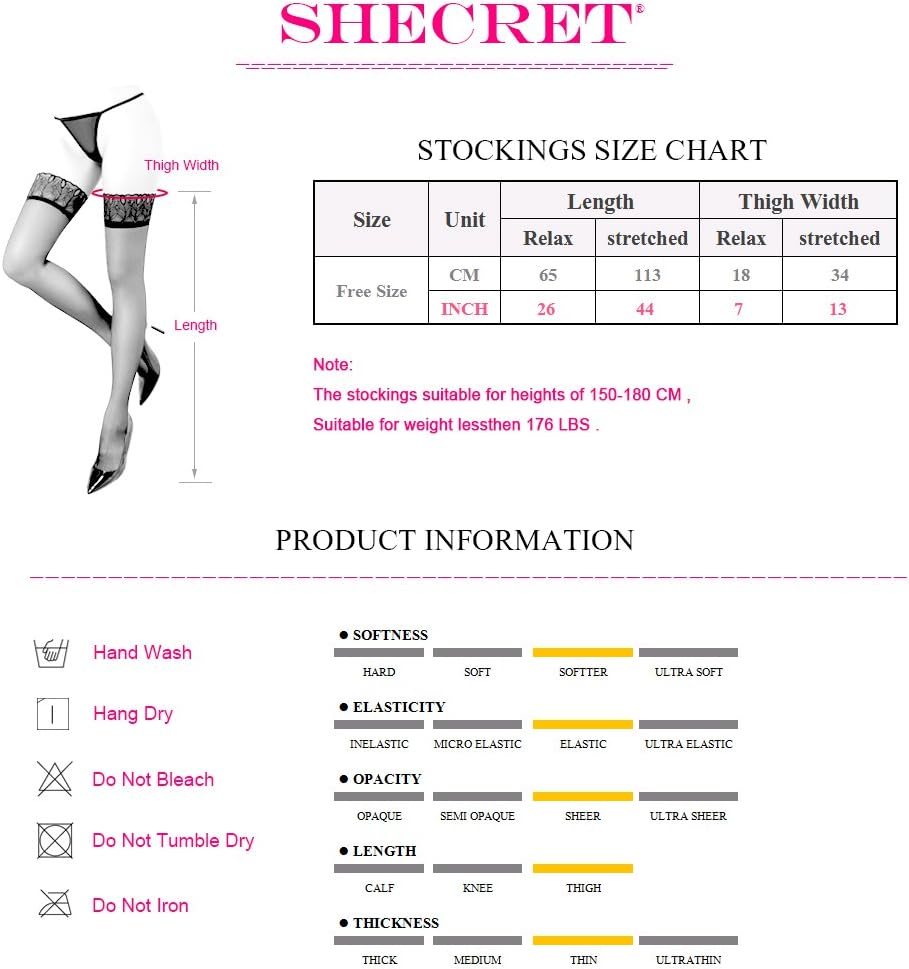 SHECRET Stockings Women's Sheer Thigh-High Stay-Ups Stockings Fit S-XL