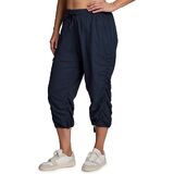 ADJUSTABLE ELASTIC WAIST- Womens woven capris pants with adjustable, elastic, drawstring waist band and leg openings for a customizable fit