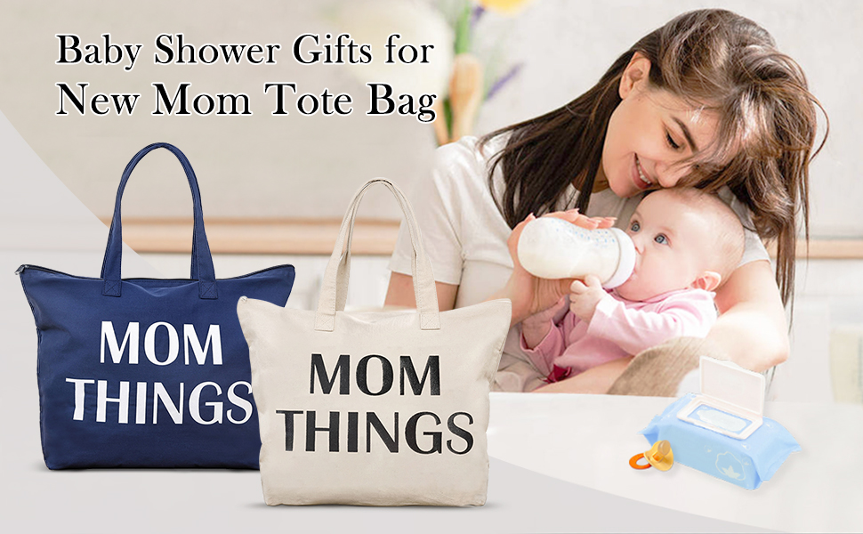 Baby Shower Gifts for Mom Tote Bag Mommy Bag for Hospital Mom Things Mom to Be Gifts Christmas Mothers Day Gifts for New Mom Canvas Shoulder Bag with Interior Pocket Cotton Navy Blue