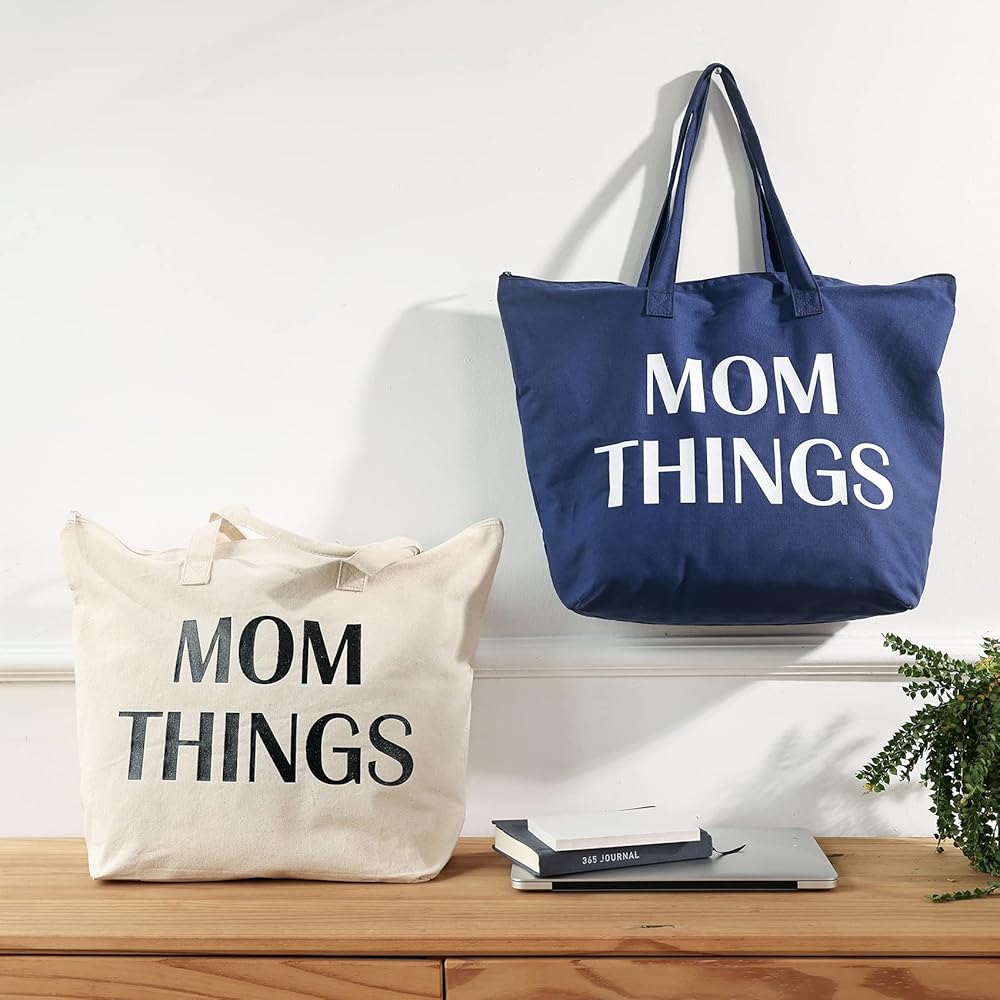 Mommy Tote Bag: These bags in fashion large font, printed "MOM THINGS" in black, perfect for keeping most of mama's necessities.