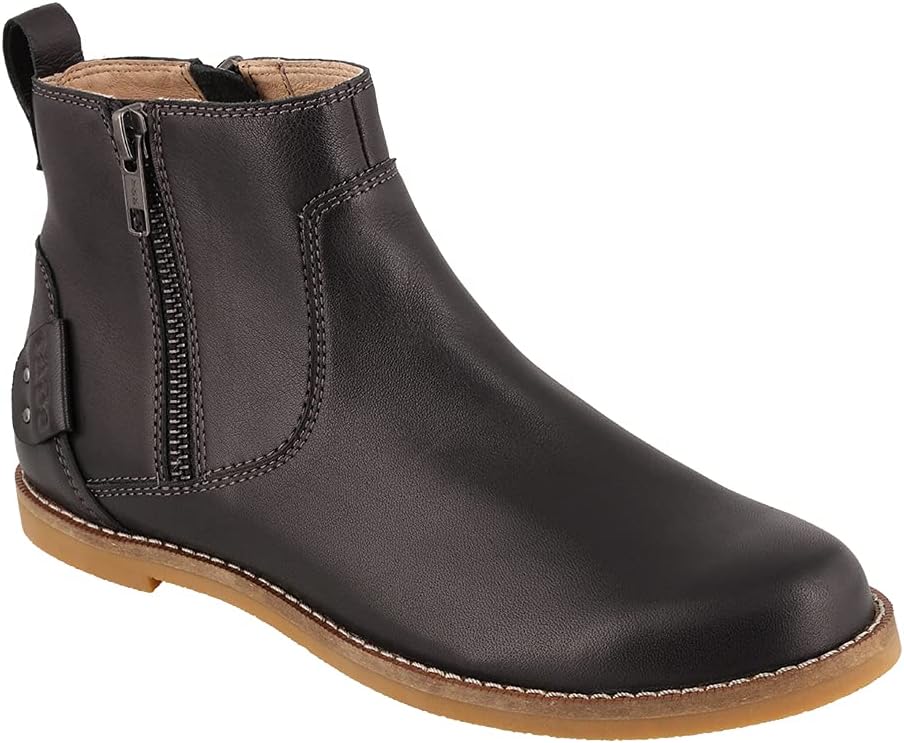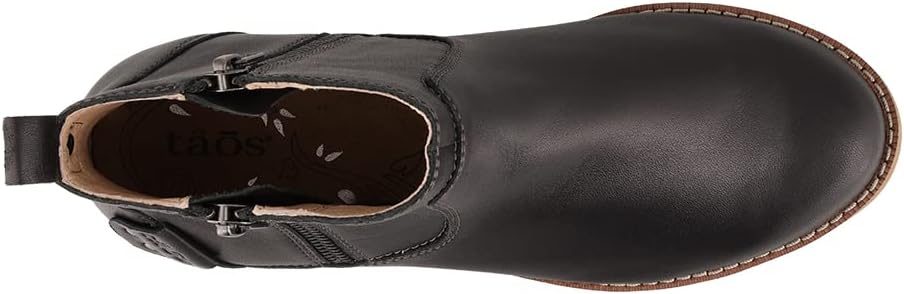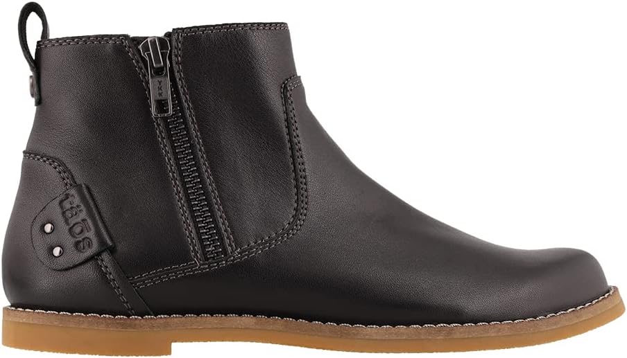 Women's Taos, Double Time Boot. This double zipper short boot has a feminine toe character and design, featuring European softy burnished leather, stitch detail on the heel and a pull tab for easy access. A perfect mix of function and fashion, these boots are sure to be your new go-to when you're making time to get things done. European softy burnished leather upperInside and outside zippers for easy on and offLeather liningTaos Soft Support polyurethane dual density removable leather-lined polyurethane footbedRubber outsole