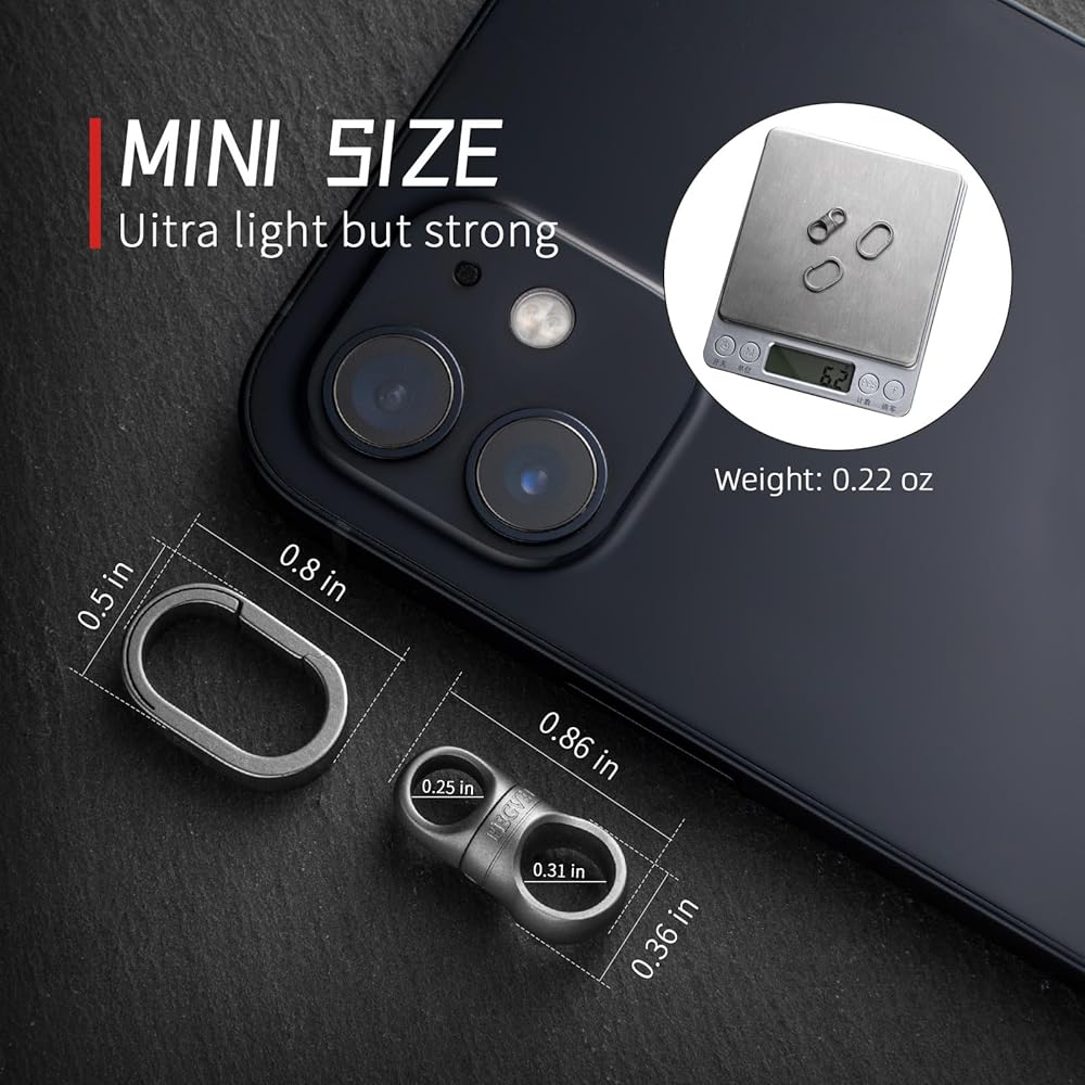 FEGVE Titanium Key Chain Rings, Mini Carabiner Heavy Duty Keychain Small Key Ring Holder for Connecting Home Keys Bracelet