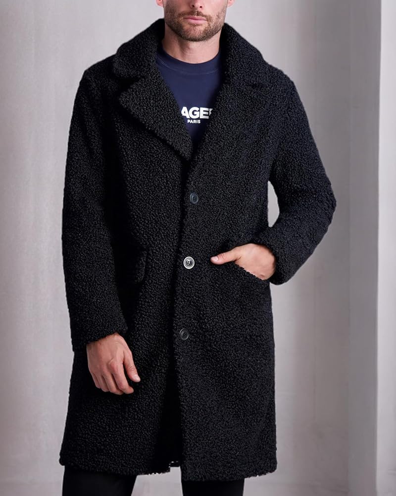 This Karl Lagerfeld Paris mens MENS COAT is a casual basic oversized sherpa top coat long sleeve