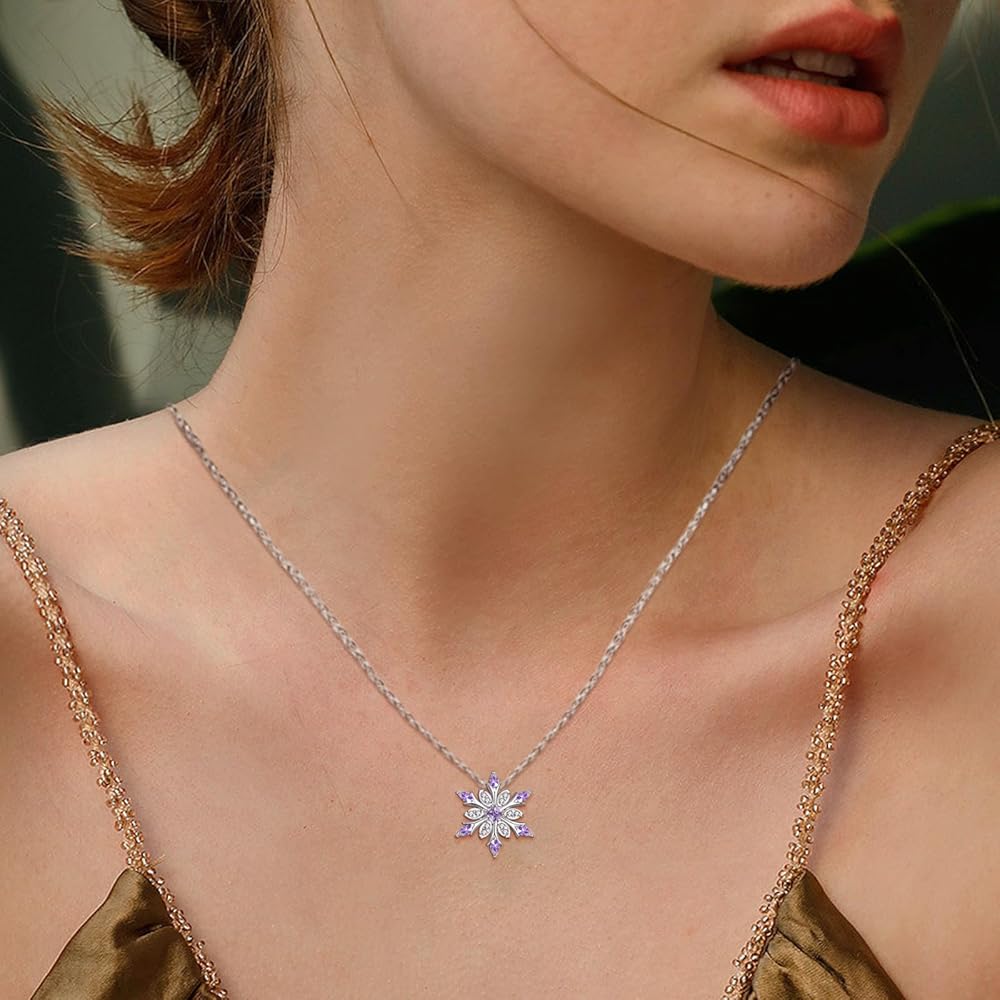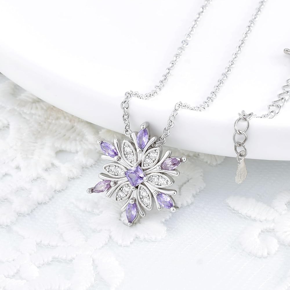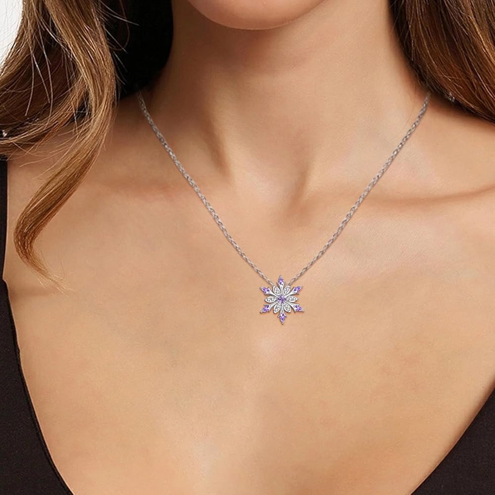 ❉ Snowflake Necklace ❉: Purple crystals are embedded in snowflakes, and the exquisite diamond necklace gives you a unique charm. The simple and fashionable style design makes you more dignified, and can be paired with any clothing, perfect for any occasion.