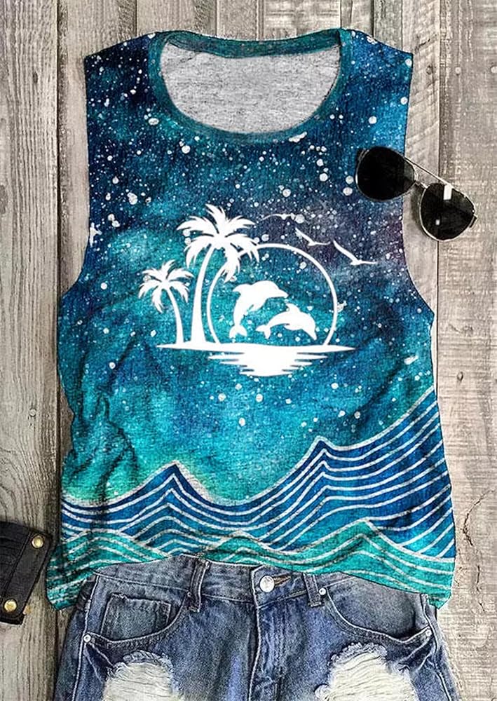 Summer Beach Casual Loose Fit Tank Tops for Women, Moon Phases Vintage Retro Print Tank Tops for Women,Summer Vacation Hiking Travel Sleeveless T Shirts