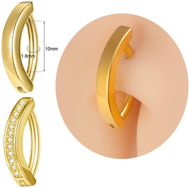 【Reverse curved barbell navel piercing Material】These Clicker belly piercing jewelry are made of high quality stainless steel bar and AAA grade gloss CZ. High polished surface, hypoallergenic, nickel-free and lead-free. Ensure to worn for a long time.whether you're wearing a crop top or short sleeve or bikini,wear belly piercing to make you more attractive.