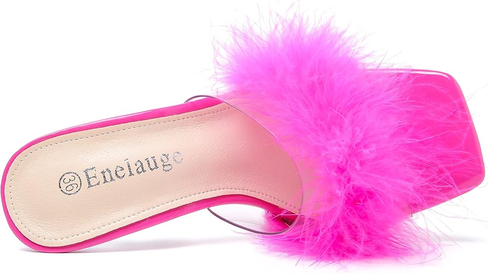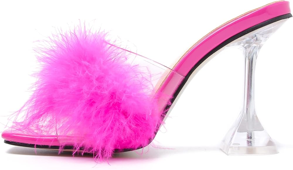 CLEAR SHOES: Fashion Sexy Fluffy Feather Design, soft and comfortable PU lining and non-slip rubber sole.soft cushion insole makes your steps stable and comfortable. Wide width heels for women easy slip on wear.