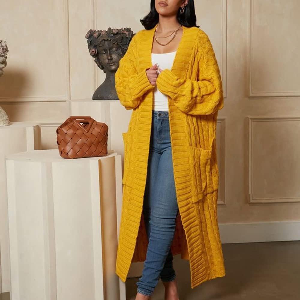 Match: Cardigan yellow extra long ankle are perfectly match with legging, jeans, boots, sneakers or tank tops inside for casual but fashion look.