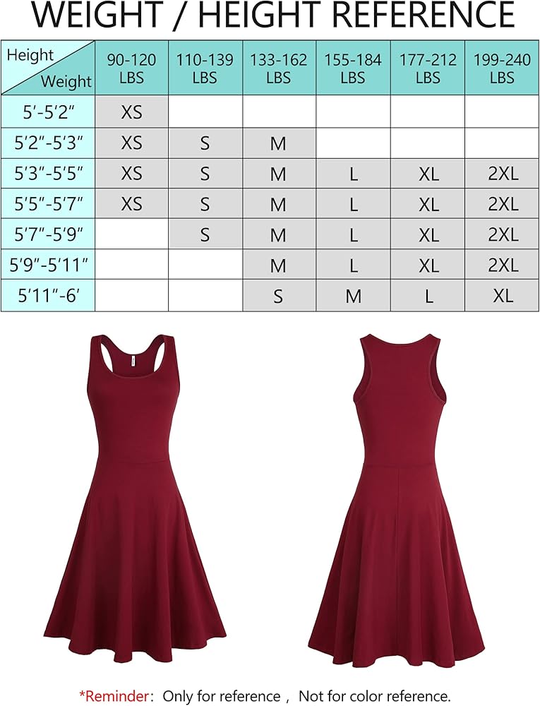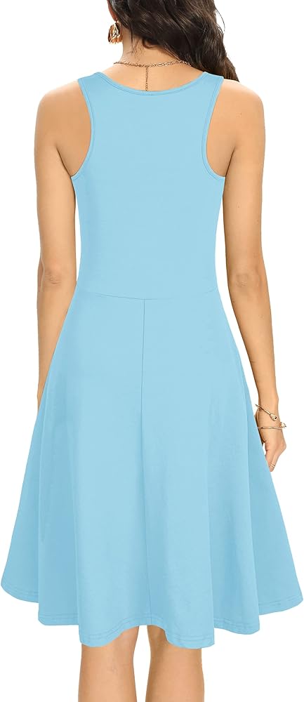 - Feature: sleeveless, racerback , round scoop neck, above knee length, a line and swing type, plain flared tank dress, casual, suitable.