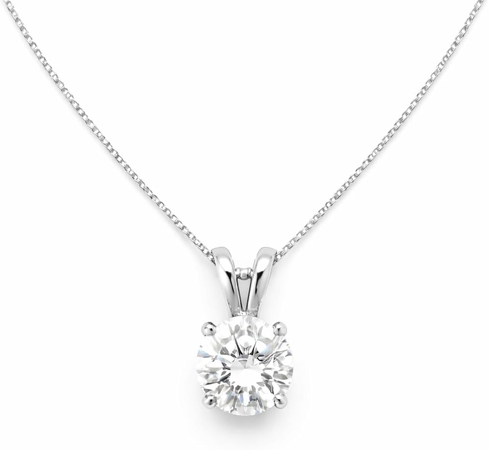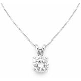 Good things come in small packages and this top selling Mariell necklace is no exception. The gleaming 2 Ct. CZ pendant has the unmistakable look of delicate diamond jewelry at a fraction of the cost. The Genuine Platinum plated necklace features a brilliant 2 Carat round-cut Cubic Zirconia solitaire (8mm) suspended from an adjustable 17" - 19" box chain. The round CZ has a lovely 4-pronged setting with a simple split-bale finding. With it's genuine Platinum plating and Cubic Zirconia, this CZ necklace pendant can be worn everyday like fine diamond jewelry. Whether buying this beautiful necklace for yourself or for that "someone special, this jewelry classic will be enjoyed for years to come thanks to its brilliant precision-cut solitaire, scratch-resistant plating and no-tarnish finish. We love the "dress-up" or "dress-down" versatility of this dainty pendant. This delicate stunner is a wearing favorite for brides and for bridesmaid's gift. It's a top choice for affordable wedding party gifts and is the perfect gift for birthdays, holidays, Mother's Day, Valentine's Day, anniversaries, Christmas and special occasions. Wear this gorgeous pendant everyday the same way you'd wear Genuine diamonds. Nobody but you will know this CZ necklace is not priceless fine jewelry. So whether you're wearing this down the aisle, jazzing up a night on the town or adding a touch of sparkle to your business suit or a holiday sweater - you'll fall in love with this versatile "go-to" fashion favorite. Treat yourself or someone you love to the gift of some sophisticated diamond-like sparkle.