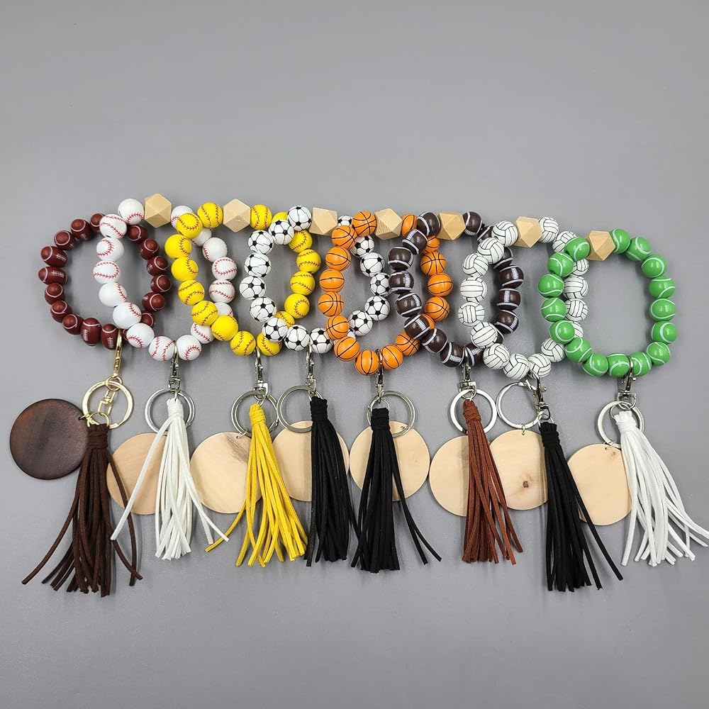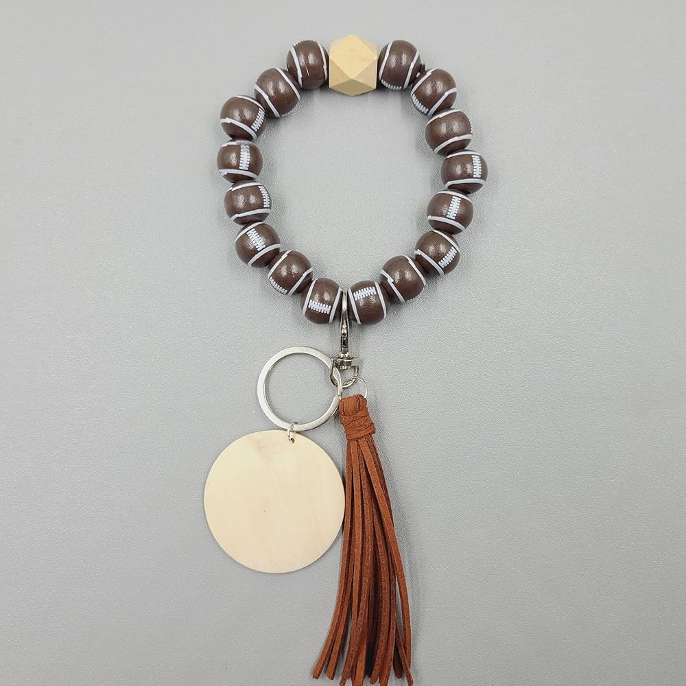 ✲【UNIQUE DESIGN】 Replacing regular beads with ball pattern beads, adding wood round chips, tassels and other decorations, this wristlet keychain looks very special and delicate, and will make you the focus of the crowd.