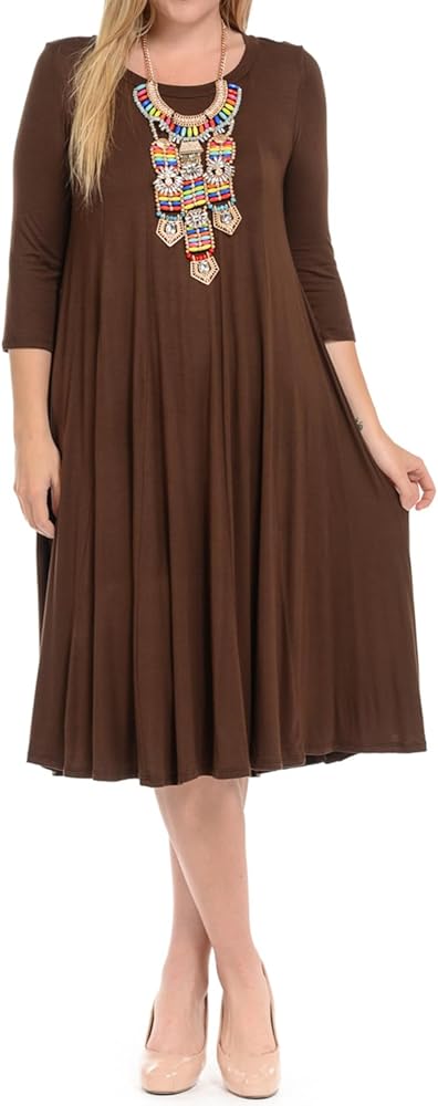 Pastel by Vivienne Women's Plus Size 3/4 Sleeve A-Line Swing Midi Dress – Flowy, Stretchy, Casual, and Comfortable