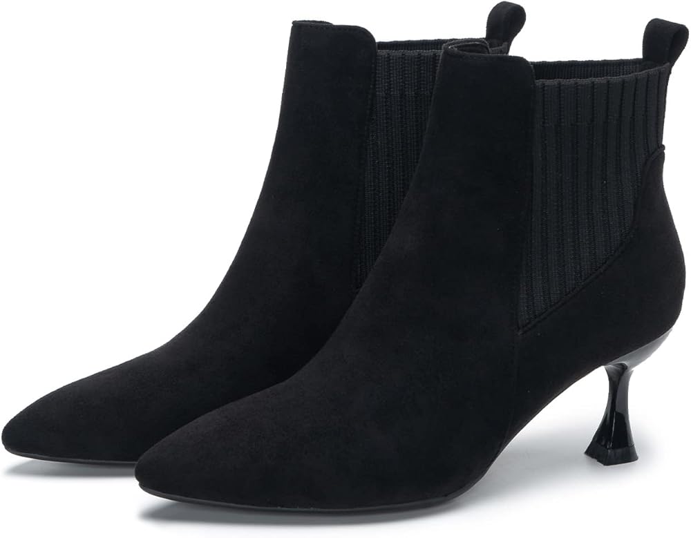 Chic Design:Booties low heel is designed with stretch knitted fabric, which are soft, dressy and elastic, it is easy to slip on and take off.