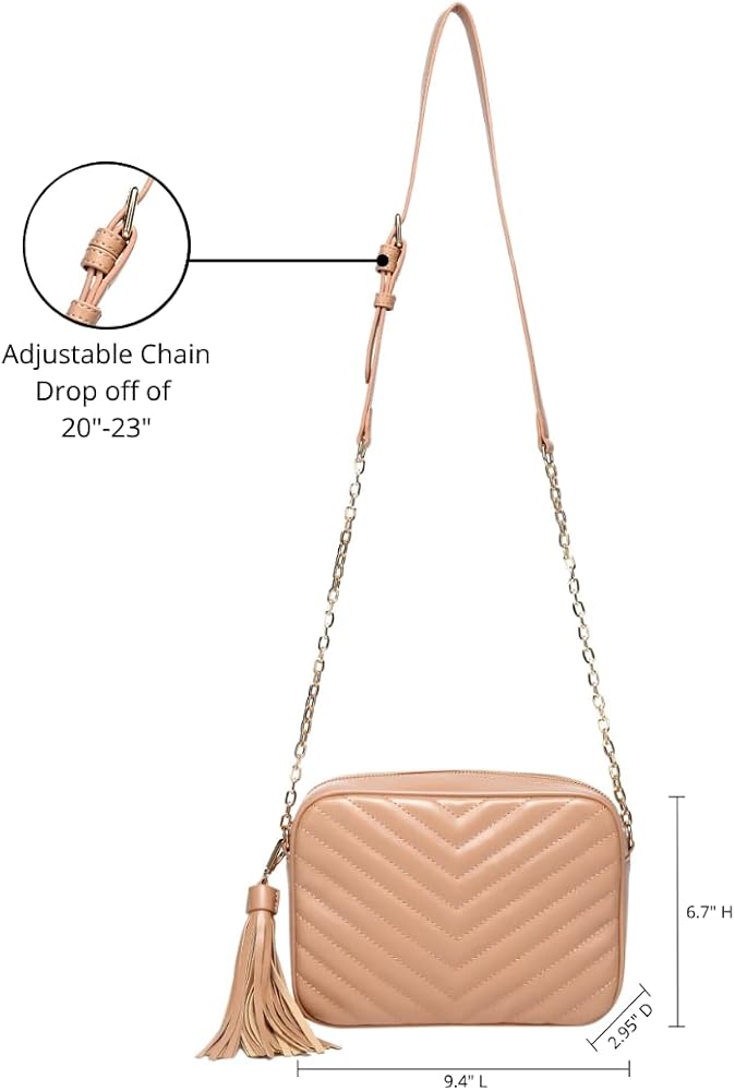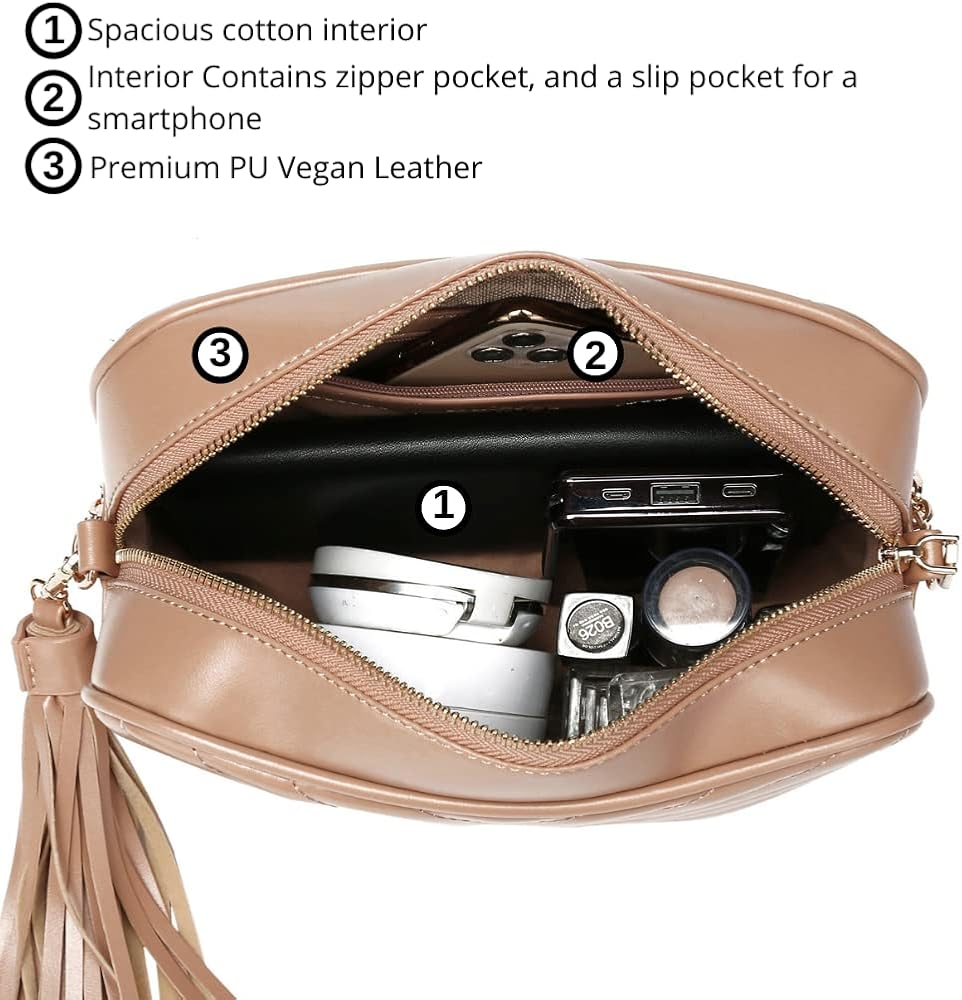 SHOULDER CROSS BODY BAG & DETACHABLE TASSEL - With this shoulder cross body bag you can organize all your personal essentials with relative ease. You can carry all your cards, passport, IDs, receipts, cell phones, tickets, and other items securely. A detachable tassel decoration is attached to the side of the bag.