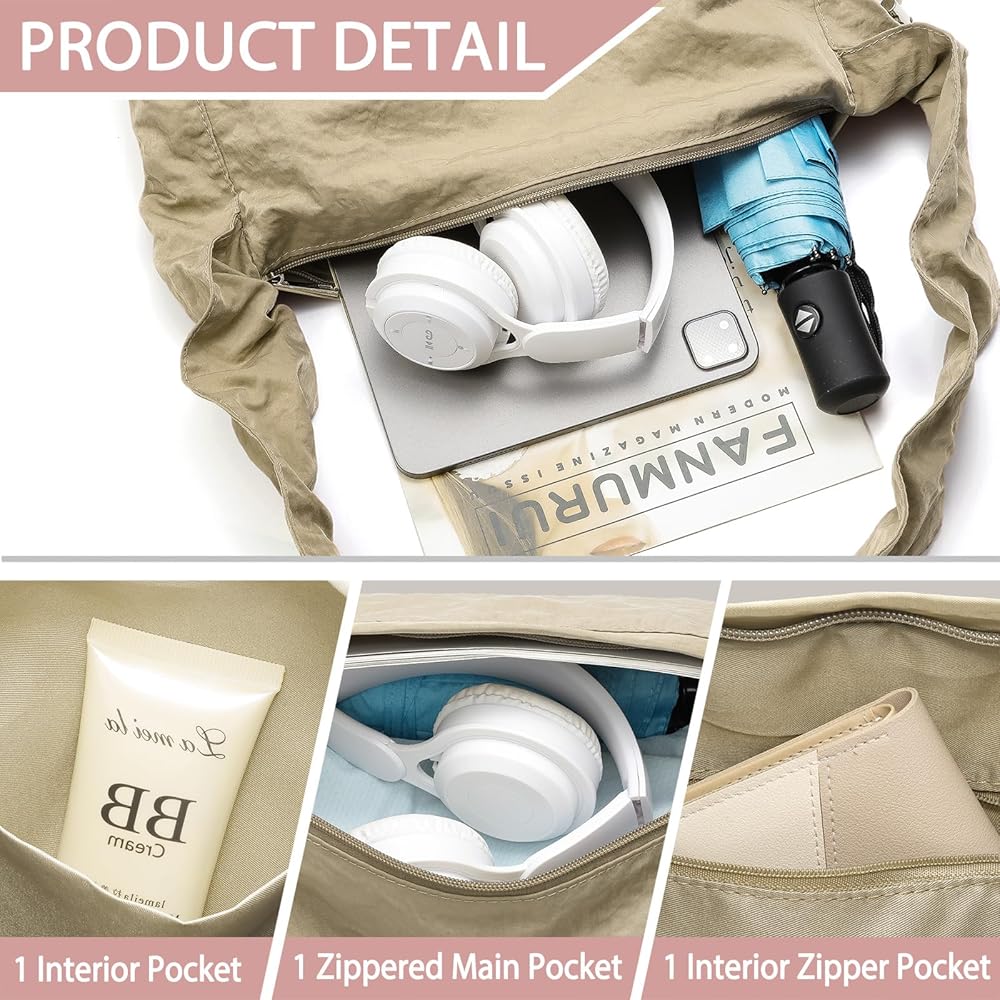 Durable Fabric: The crossbody bag is made of durable nylon fabric, durable, lightweight, just only 0.35lbs. The tote bag is easy to clean and maintain, perfect for holding makeup, sunscreen cream, lipstick, keys, mini fans, ID cards, mobile phones, water bottles, umbrellas, and others you want to carry.