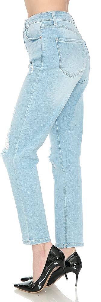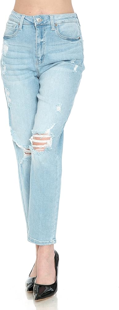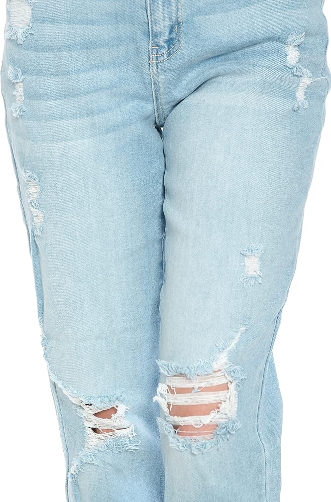 Little Vintage Girls Distressed Classic Mom Wax Jeans - Fun style with high rise and waist, rolled cuff, and comfortable stretch cotton. The blown out, ripped knees create an eye-catching look that always earns compliments. Perfect for everyday, social events, and romantic evenings. Quality 11.1 ounce denim fabric with lots of upgrades. One button and zipper closure in favorite 5 pocket design. Get these original rolled cuff boyfriend jeans that can't be matched by store brands and copycats. You're going to love the way you look in the mirror. Product Features: Little Vintage Girls Women's Classic Mom Wax Jeans Destructed blown knee Rolled cuff High waist, high rise Comfortable 11.1 ounce STRETCH denim 93% Cotton, 5% Polyester, 2% Spandex Button and zipper closure 27" Inseam, 10.5" Front Rise, 12.5" Leg Opening Size Info: 0=24, 1=25, 3=26, 5=28, 7=29, 9=30, 11=31, 13=32, 14=34, 16=35, 18=36, 20=38 Get Yours - While we have this new design in a fresh batch ready to ship direct to your door. Many customers love the premium look and great fit so much they return to buy more. This makes a much appreciated gift for friends, family, and co-workers who appreciate inspired designs and top quality construction.