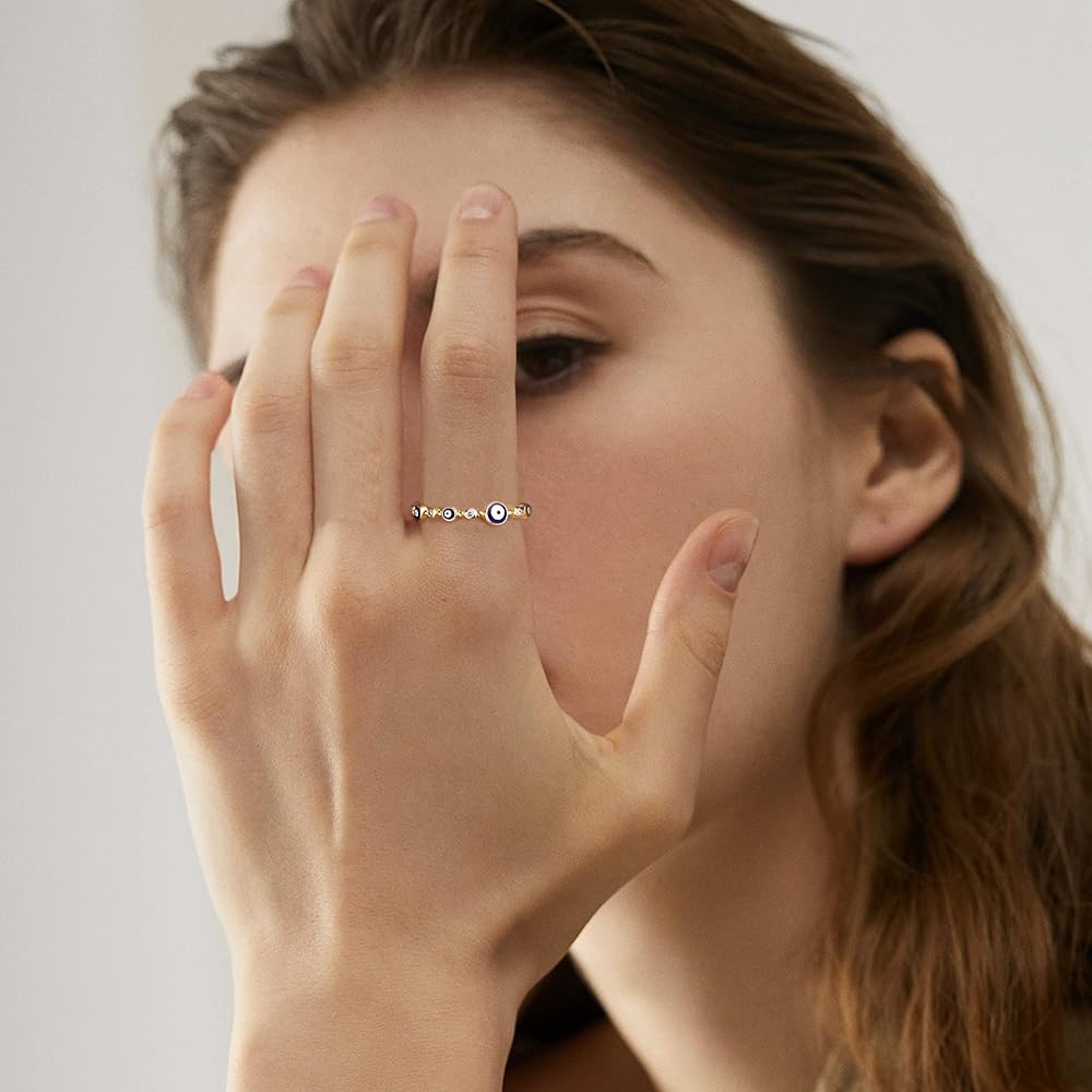 👁️🗨️DESIGN👁️🗨️Evil eyes mean to protect you from the jealous eyes of others and protect you from escaping the bad luck. This evil eye ring can be used not only as an amulet but also as a decoration jewelry.
