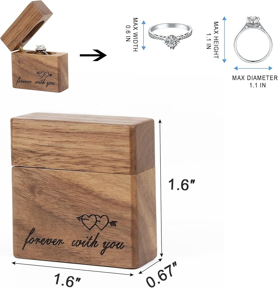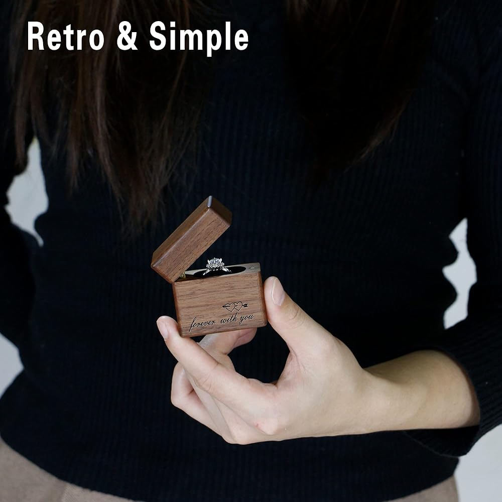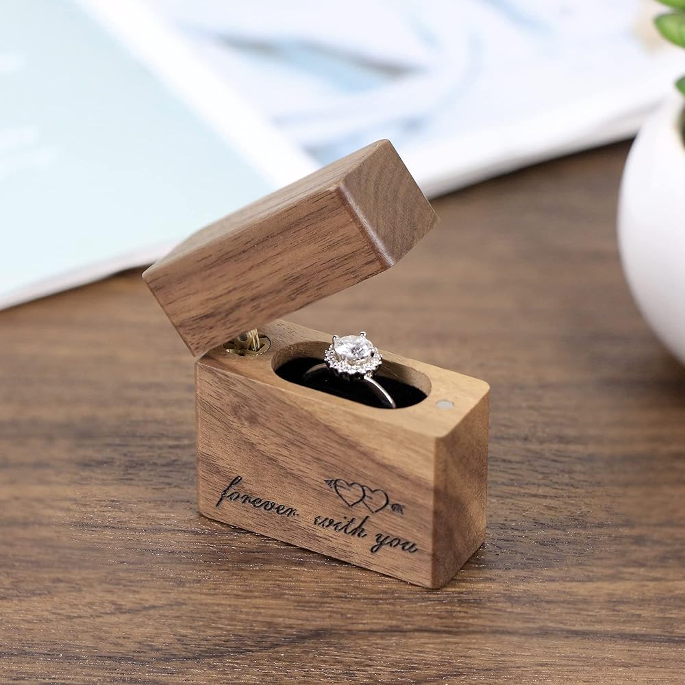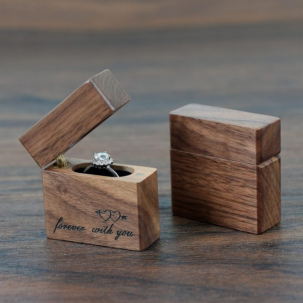 Exquisite Design: Concealed magnetic closure design with the soft velvet ring insert, it can hold and protects the ring This picturesque heirloom Wooden Ring Box laser engraves " forever with you ".