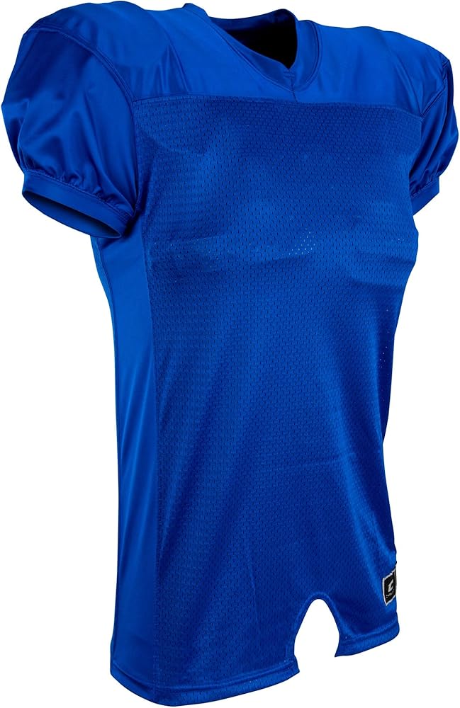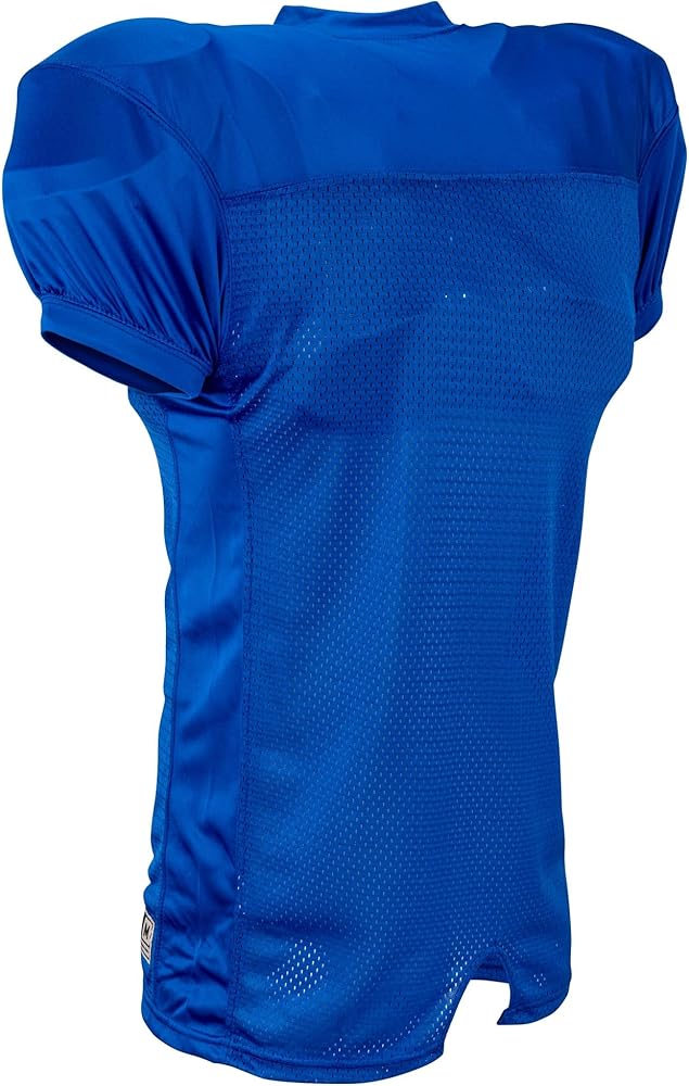 Stretch poly dazzle double-ply cowl, sleeves, side inserts and v-neck Polyester stretch mesh body Elastic cuffs Mitered v-neck Coverstitched and bar-tacked for optimum durability Full-length body with motion vents