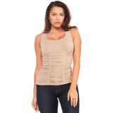 FEATURES: Our tried and true seamless top. The most flattering ruched seamless top. A nice moderate scoop neck with 3 panel ruching in front and back, for full coverage. Pull length of top up or down for desired length and desired amount of ruching.