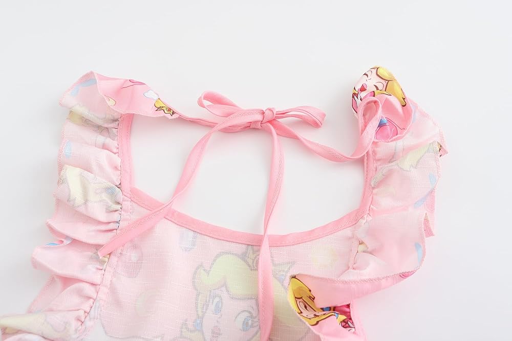Cute Design: Princess peach dress for girls is designed with fun ruffle sleeves, knees length, crew necklines, simple pullover style, adorable cartoon pattern make your princess to be the most cute and shining girl in the crowd