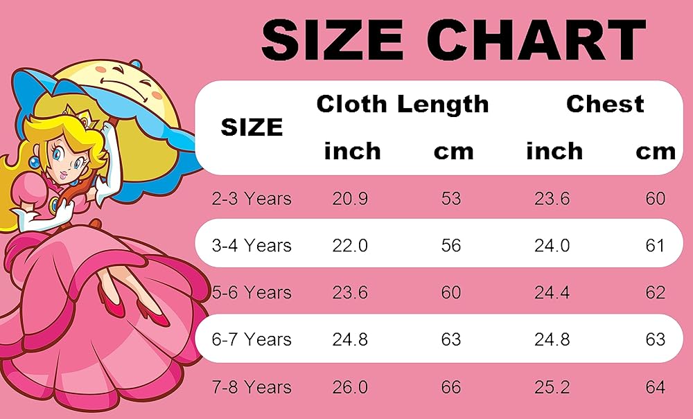 Princess Peach Dress for Girls is printed with cartoon princess patterns, super adorable, your little girls must can't wait to wear this dress with her favorite character