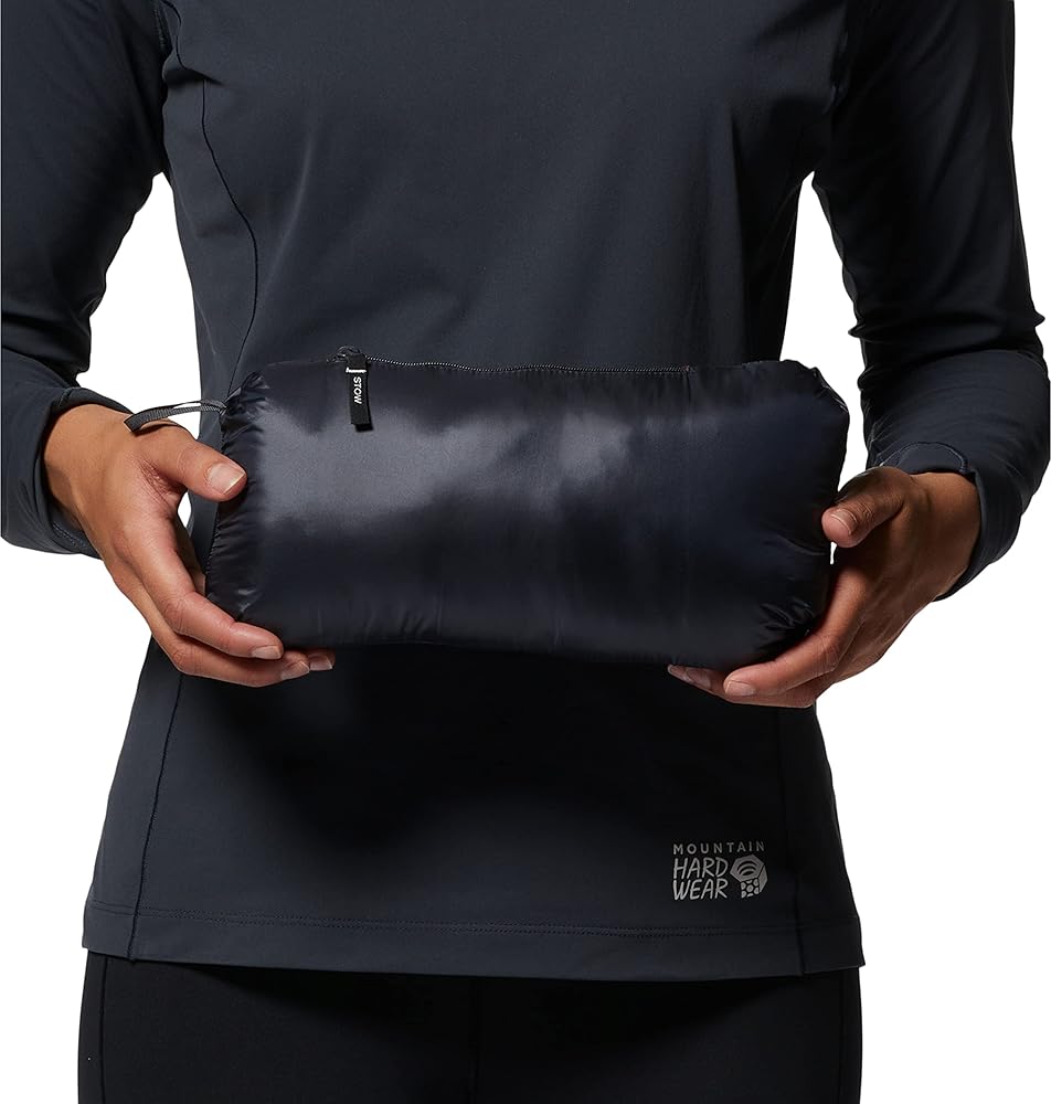 Jacket stows in hand pocket to stash in your pack or clip to your harness