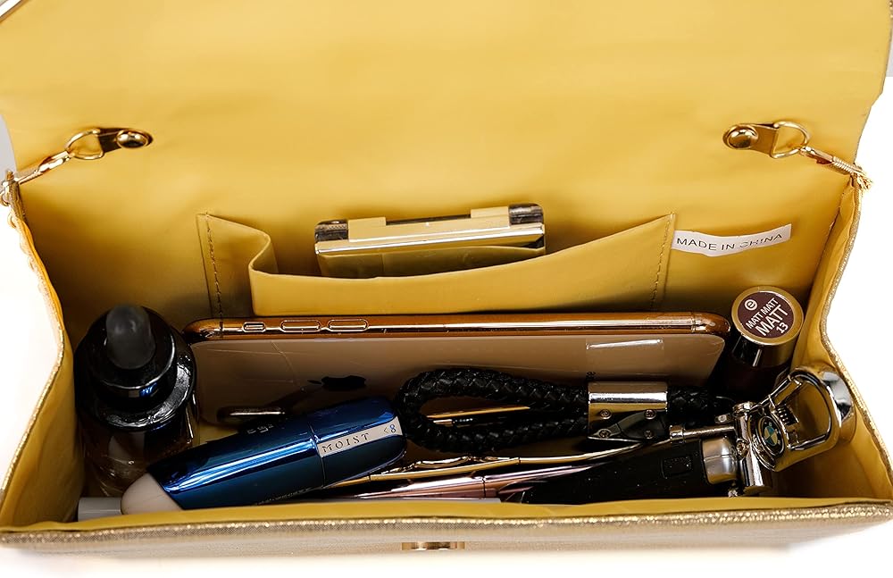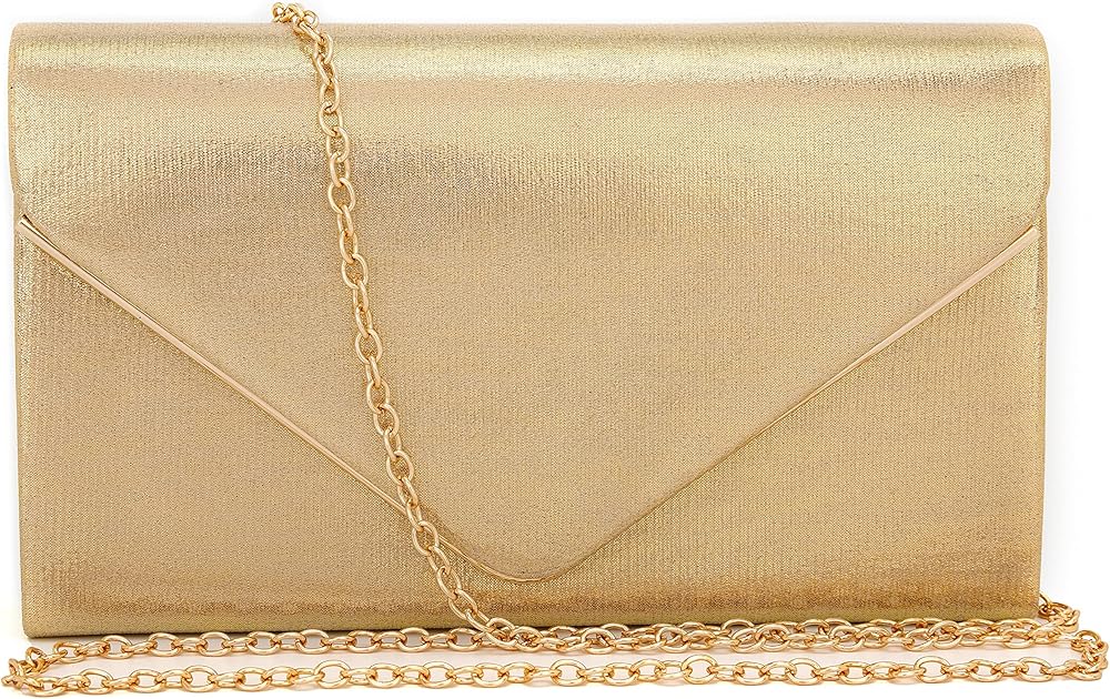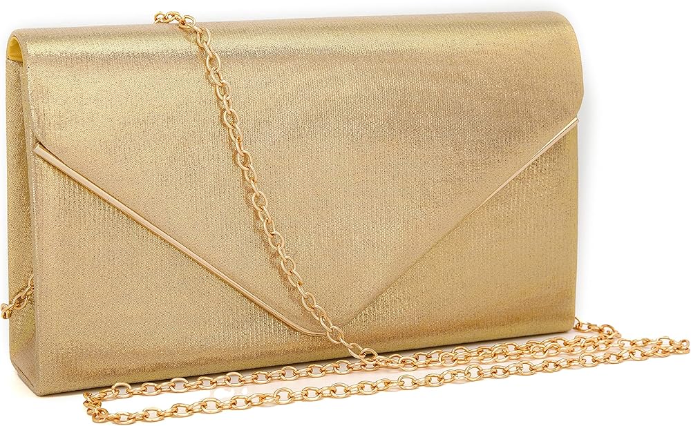 ♥ Sparkling formal clutch, exquisite in design and high in quality, the classic envelope style with gold tone hardware, looks very simple, elegant, as well as high class.The shiny metal cross trim design adds more chic and glamour for you..