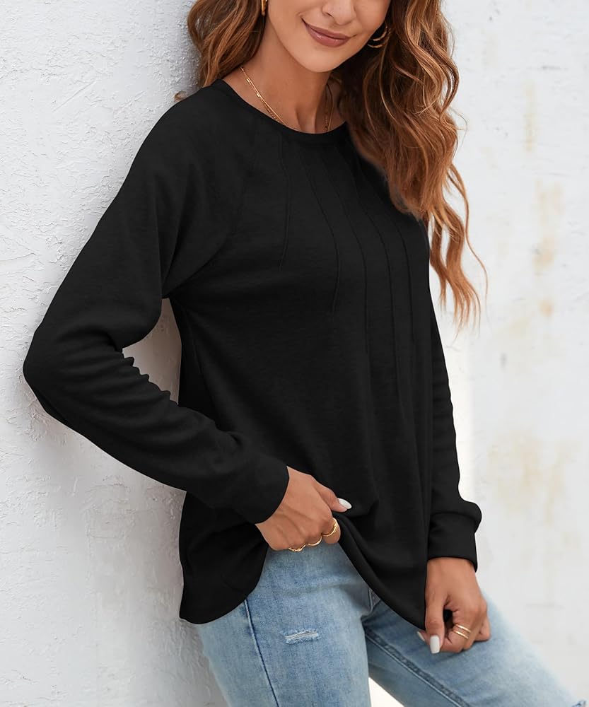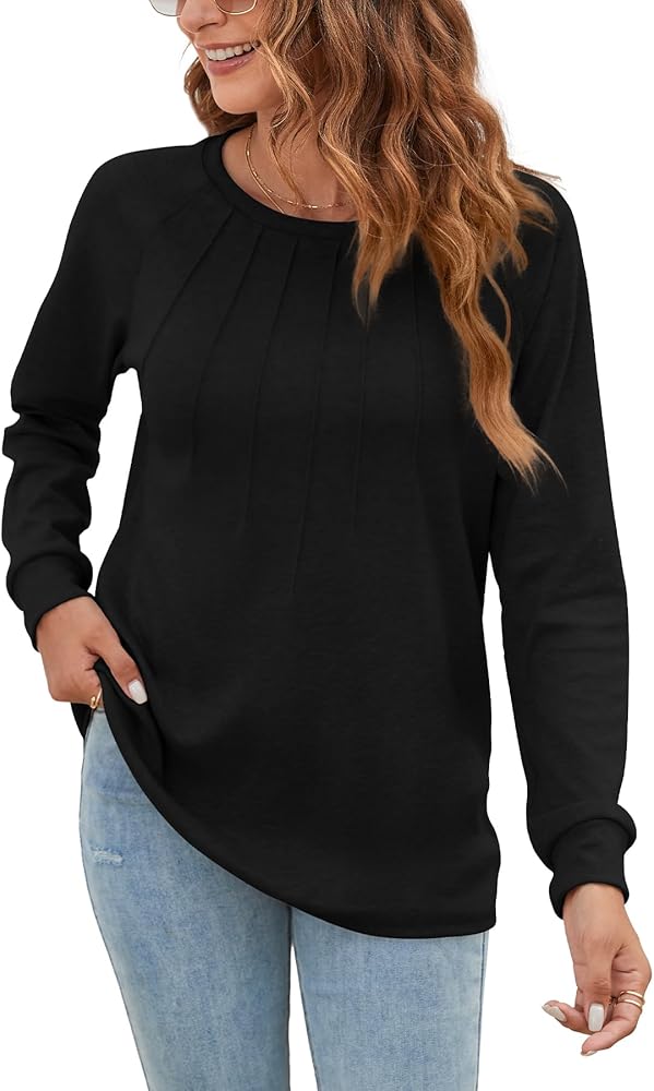 ❤【Casual Design】:Long Sleeve tops/crew neck /loose fit/fashion casual/Tunic Length/Pleated front blouse. Classic and Basic shirts are never out of style.Tunic tops are perfect to wear with leggings, skinny jeans, jeggings, jeans, shorts,skirts, yoga pants,stretch pants, or boots,sneakers. A must-have item in the wardrobe