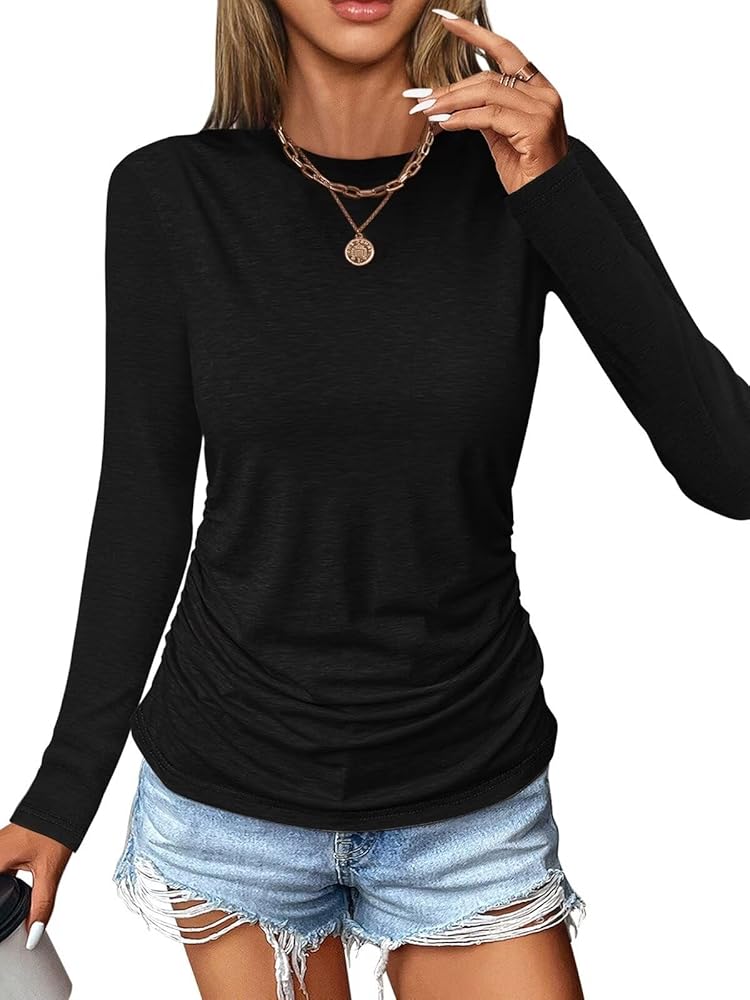 【Fit Beautifully】Ruched design makes you look thinner and more dressy. The casual womens long sleeve tops are versatile and adapt effortlessly to any style, whether you're dressing up for a work occasion or keeping it casual.