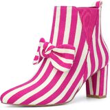 Allegra K Women's Pointed Toe Zip Striped Chunky Heels Ankle Boots