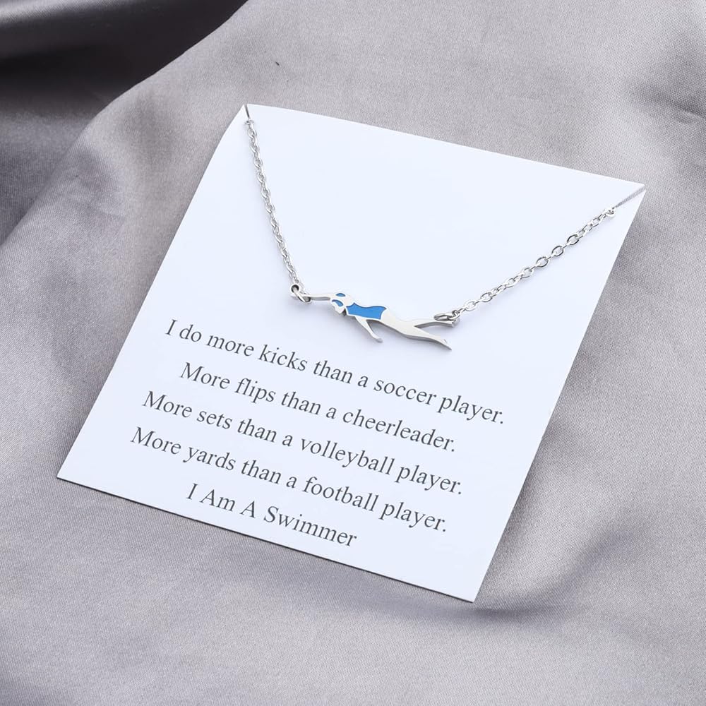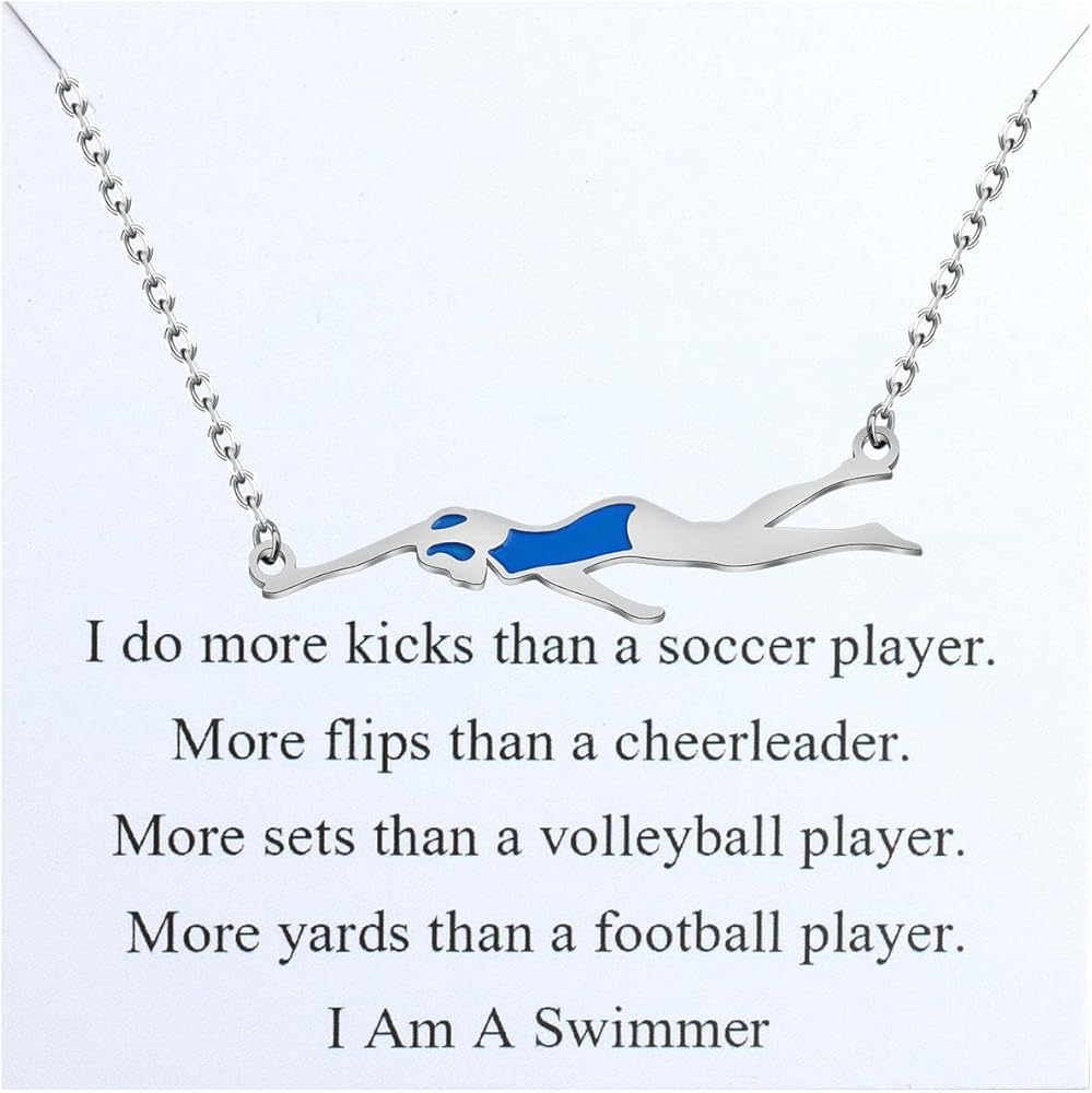 ❤Swimmer Lover Necklace❤This swimmer card with design hand engraved -I do more kicks than a soccer player. More flips than a cheerleader. More sets than a volleyball player. More yards than a football player.I Am A Swimmer.