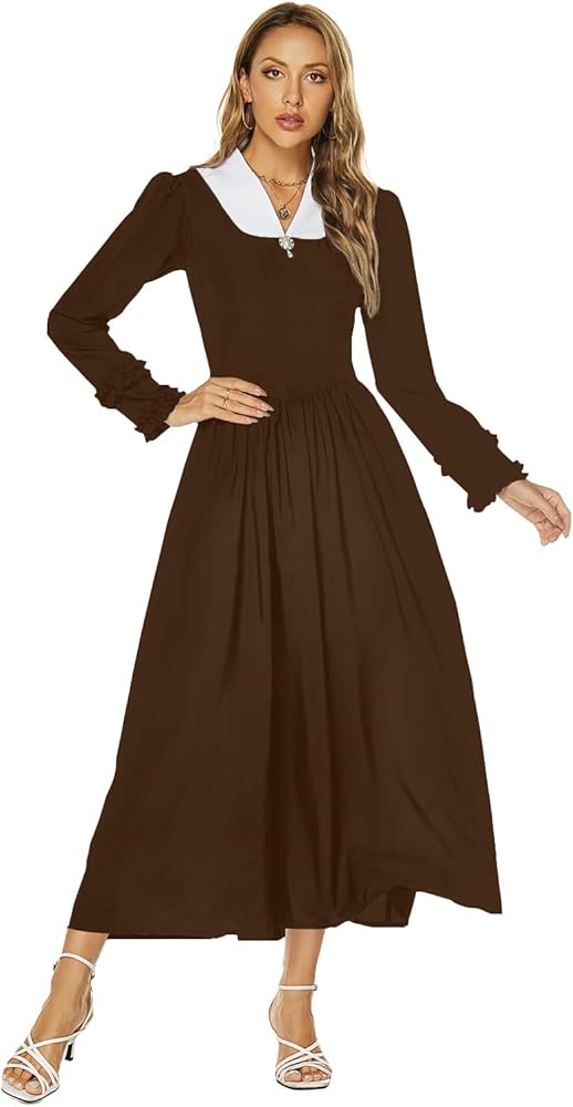 Applicable Occasion: It's suitable for many different occasions. Ideal for School Colonial fair, Thanksgiving, Easter, Halloween, Picnic Outside, Education Day, Pilgrim, Modest Prairie Pioneer Party, Colonial Party, 1800s party and so on. The dress can be used to a 1800s dress, prairie dress, pioneer dress and so on.